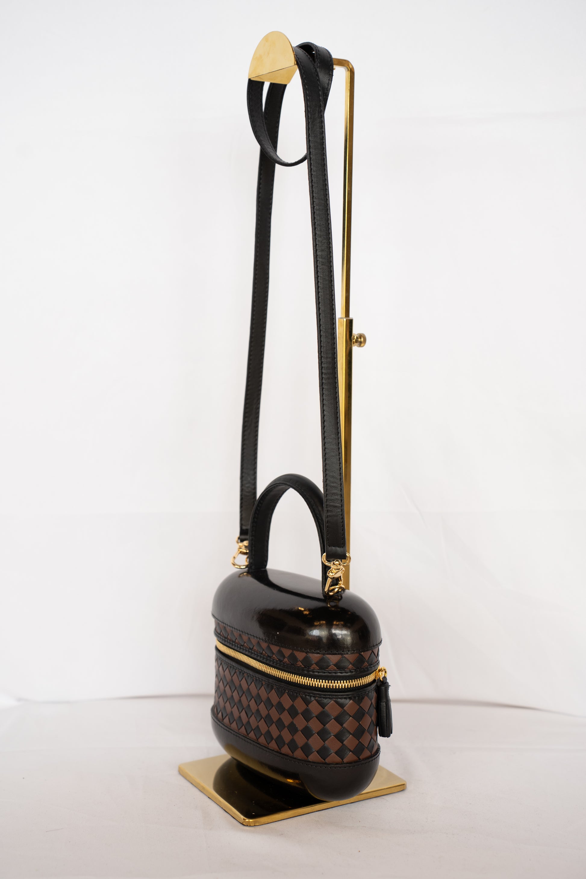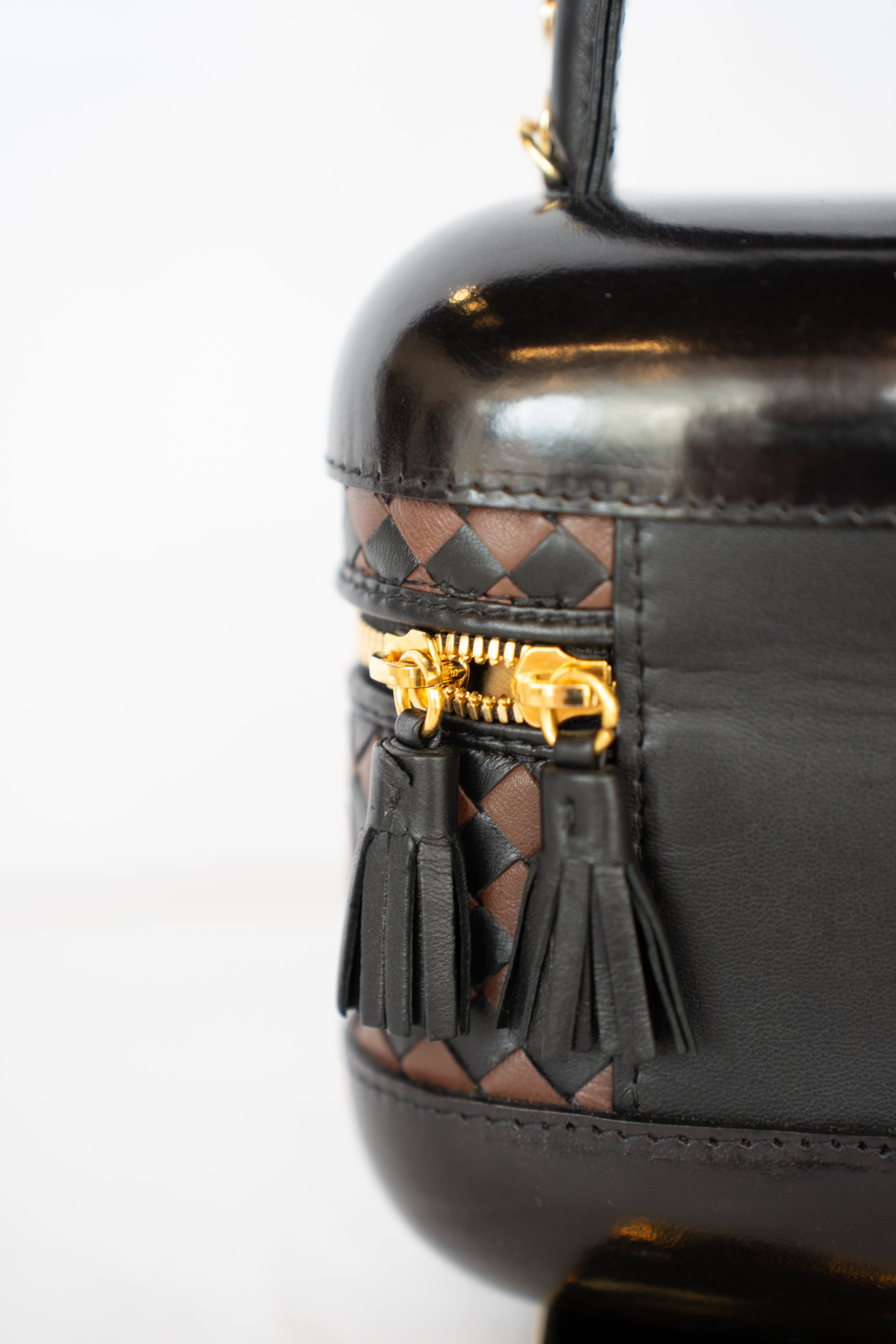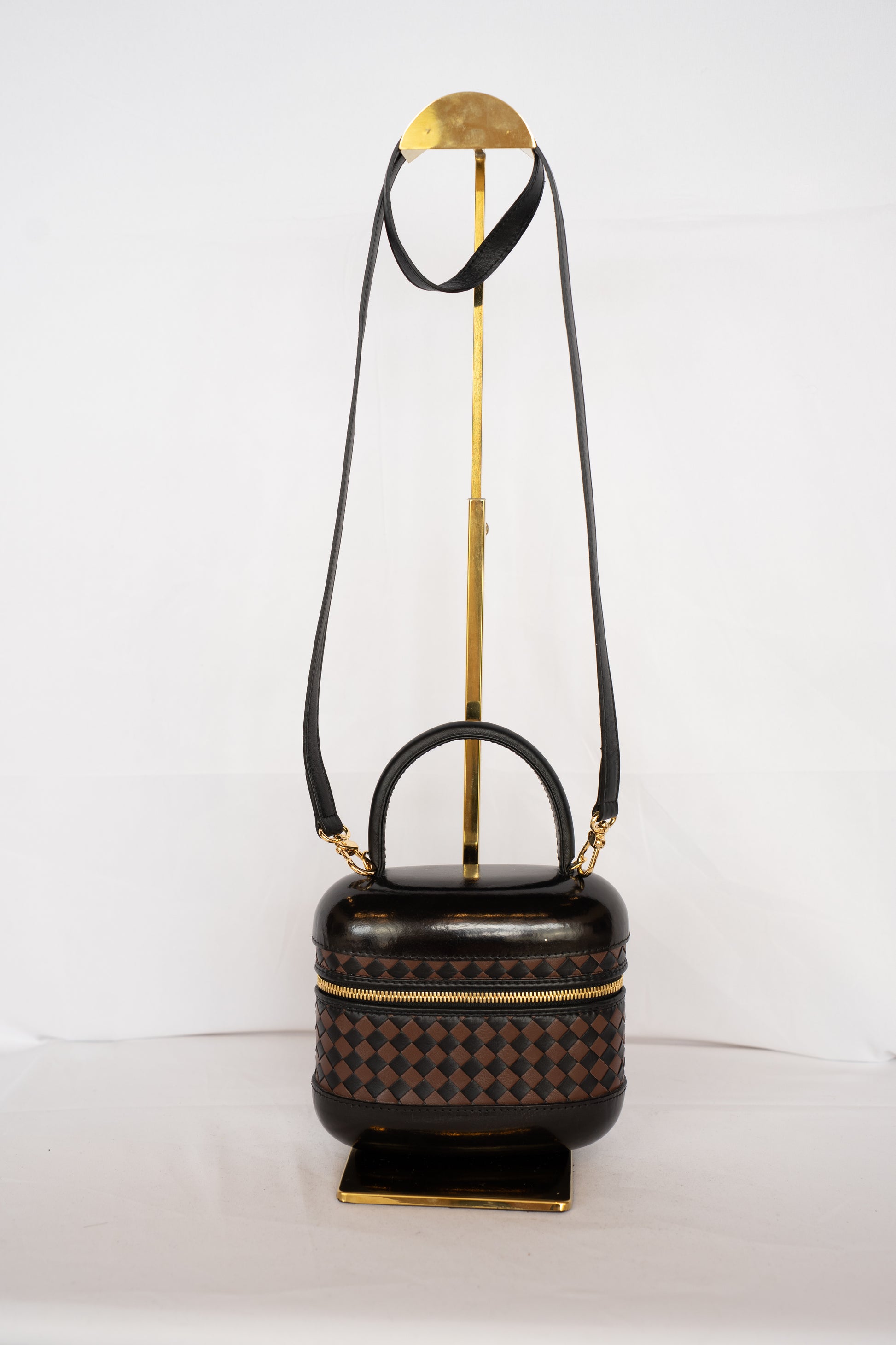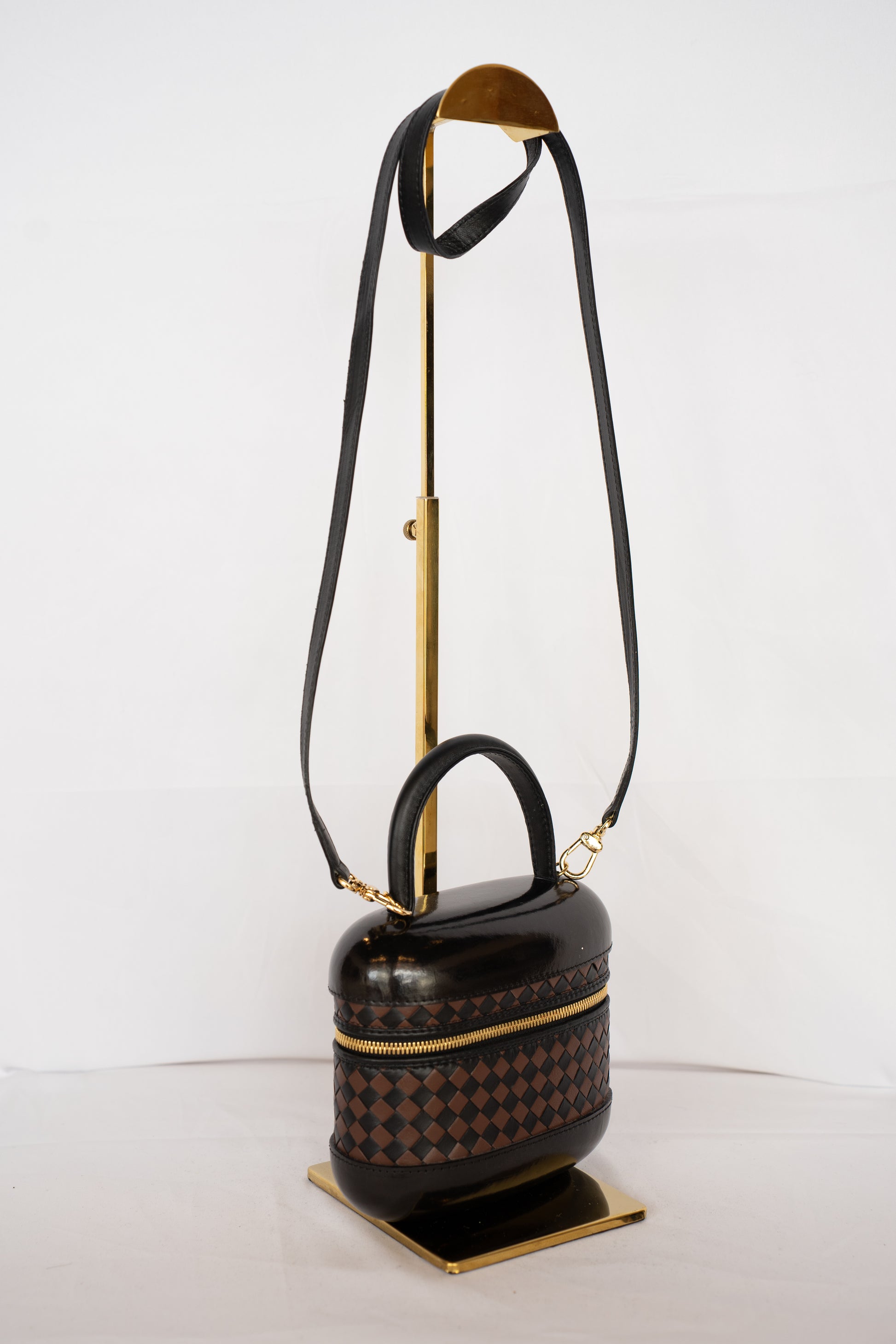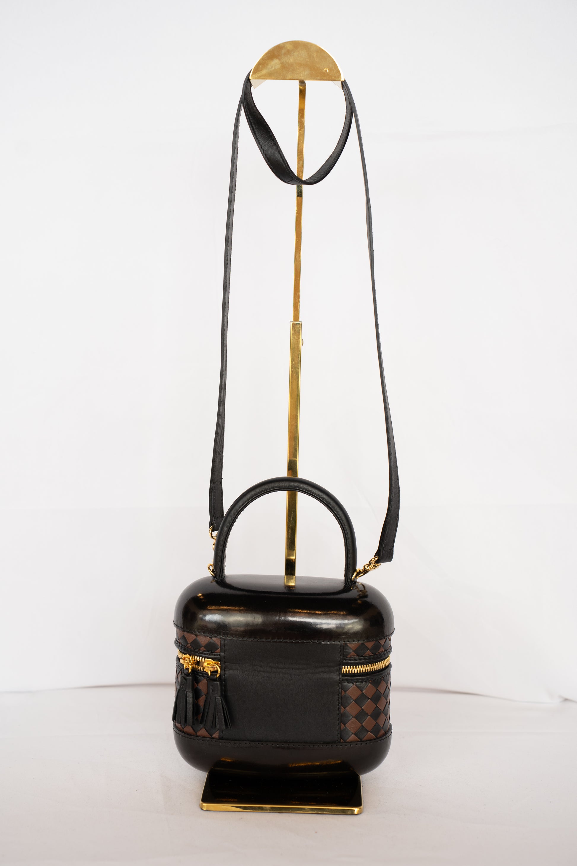 Scuola del Cuoio Black & Brown Woven Leather Top Handle Bag & Wallet Set
