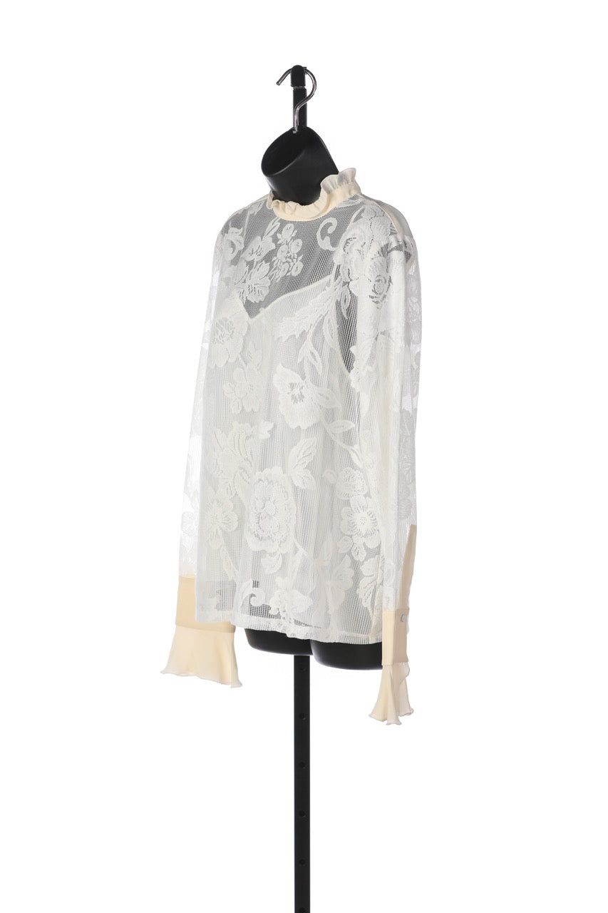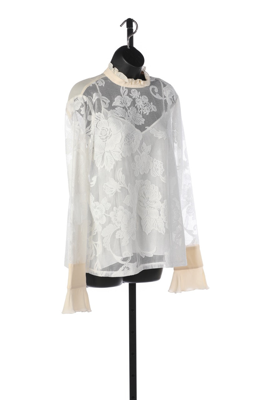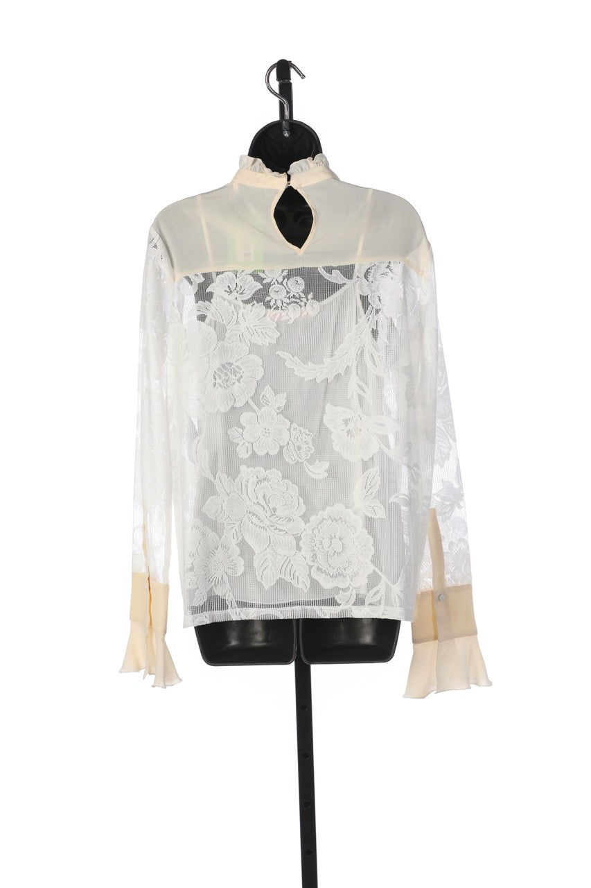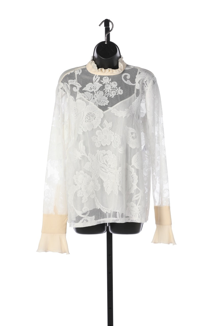 See By Chloe Cream Lace Long Sleeve Ruffle Hem Blouse NWT