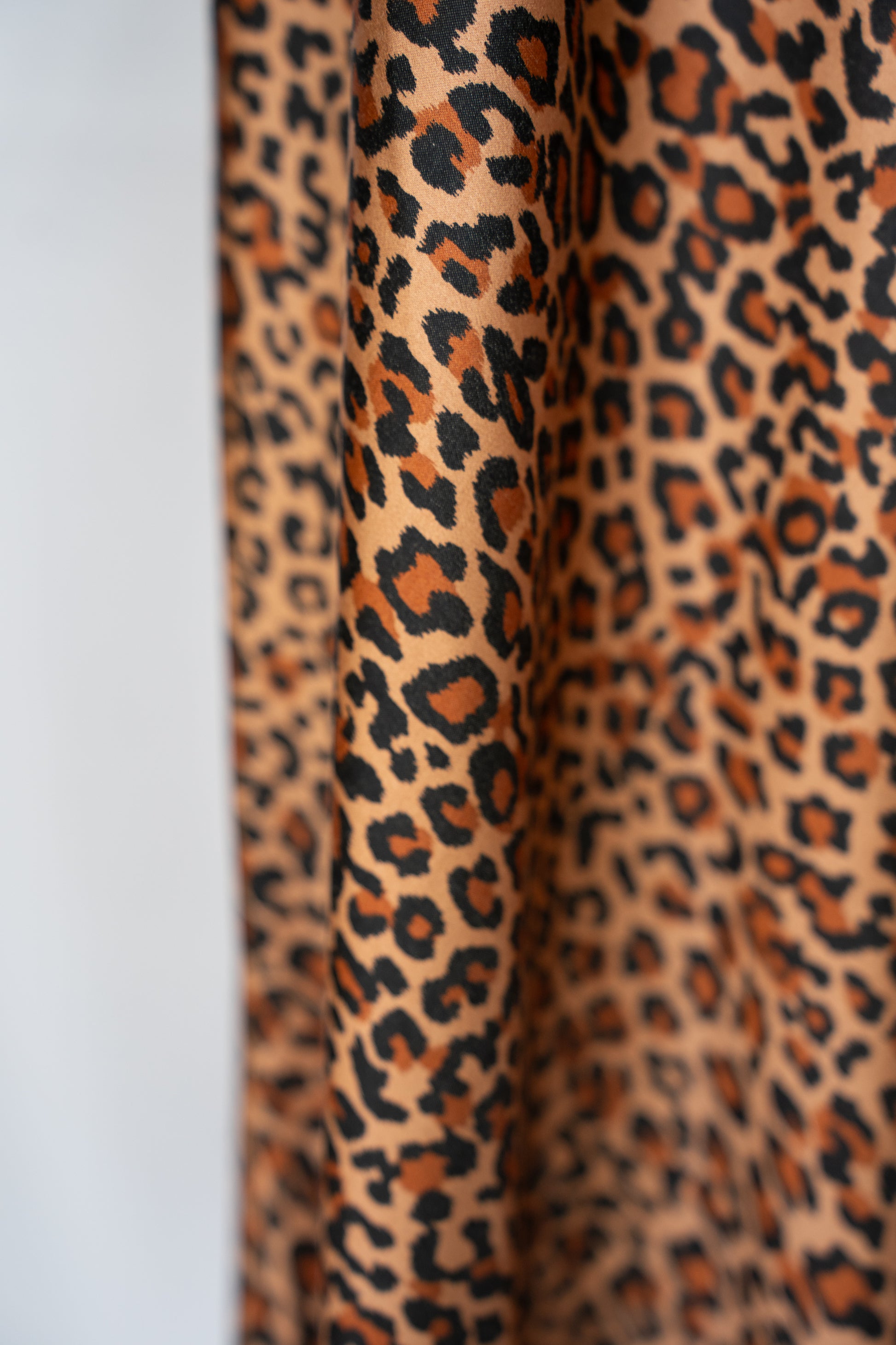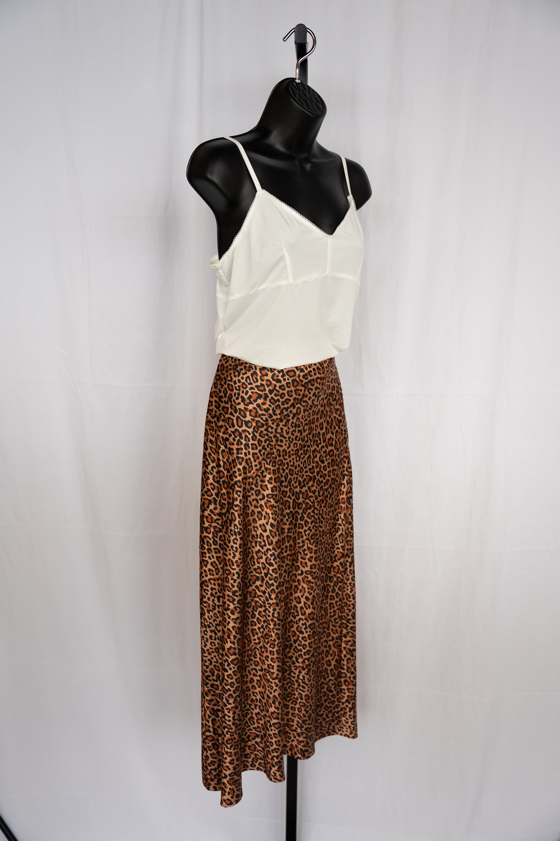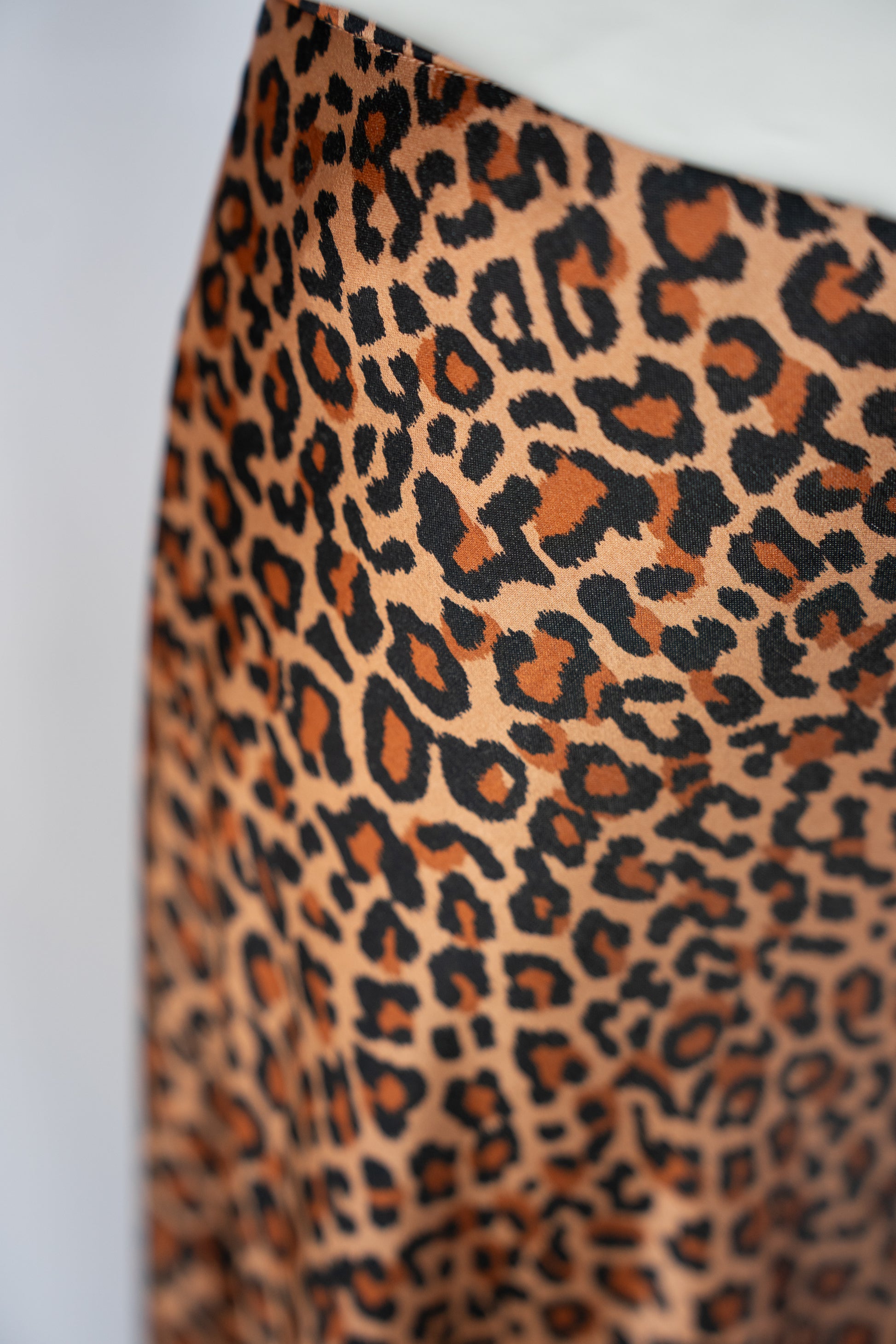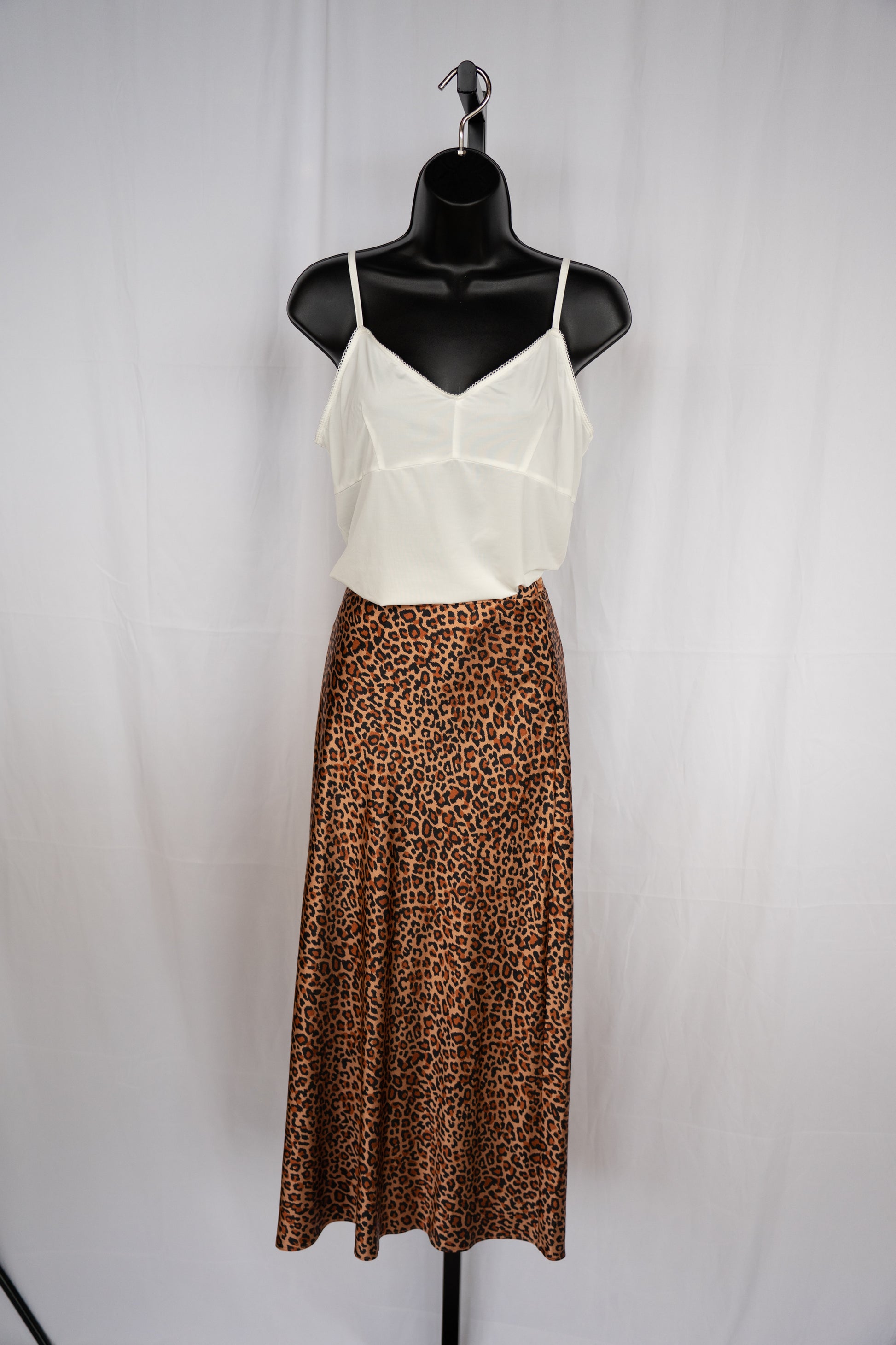 Something Navy Satin Brown Leopard Print Midi Skirt