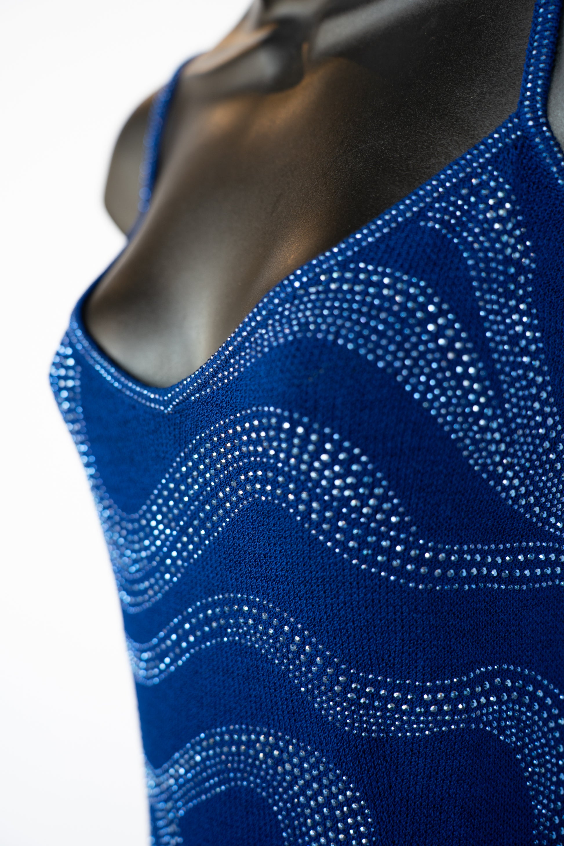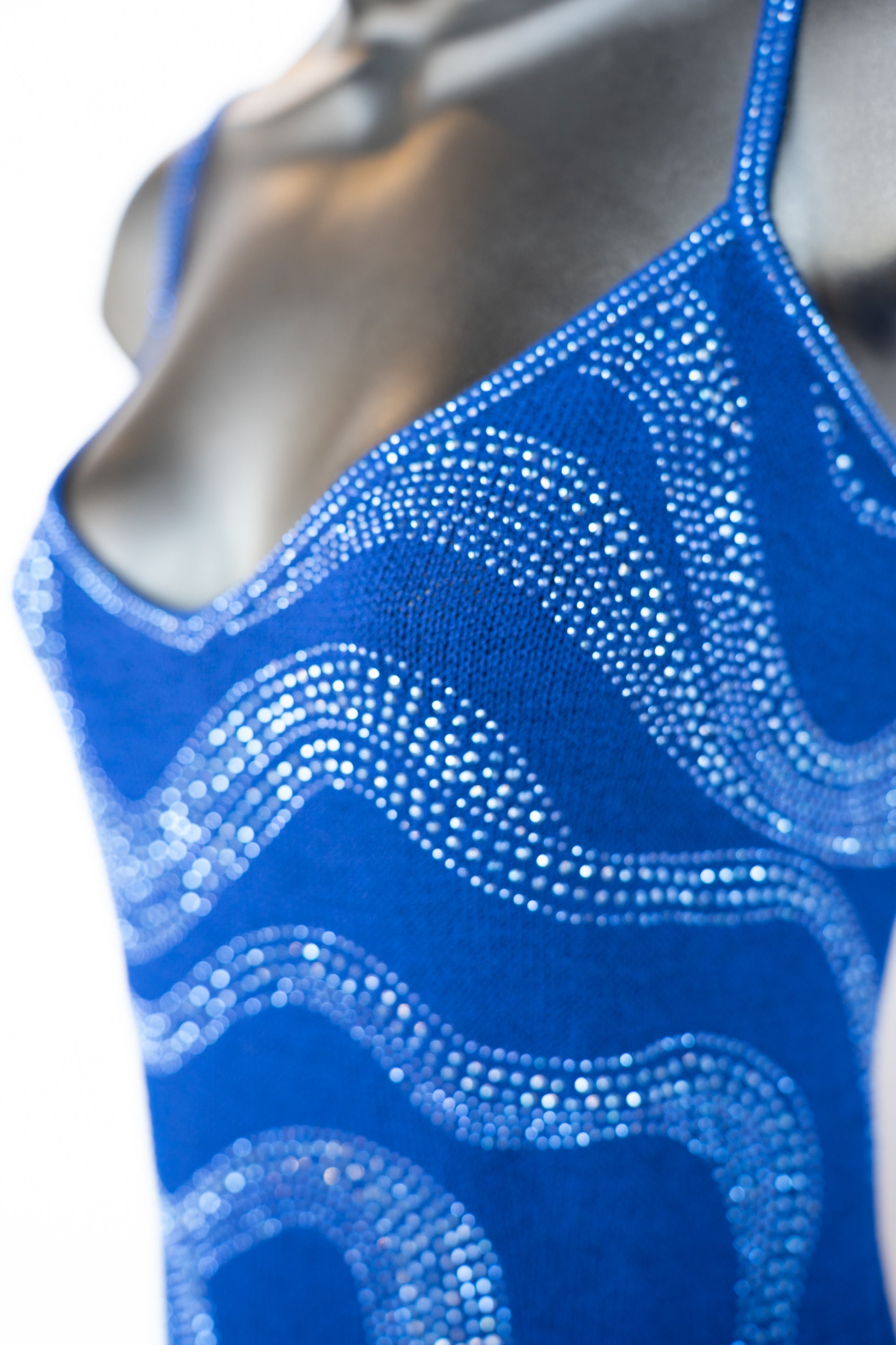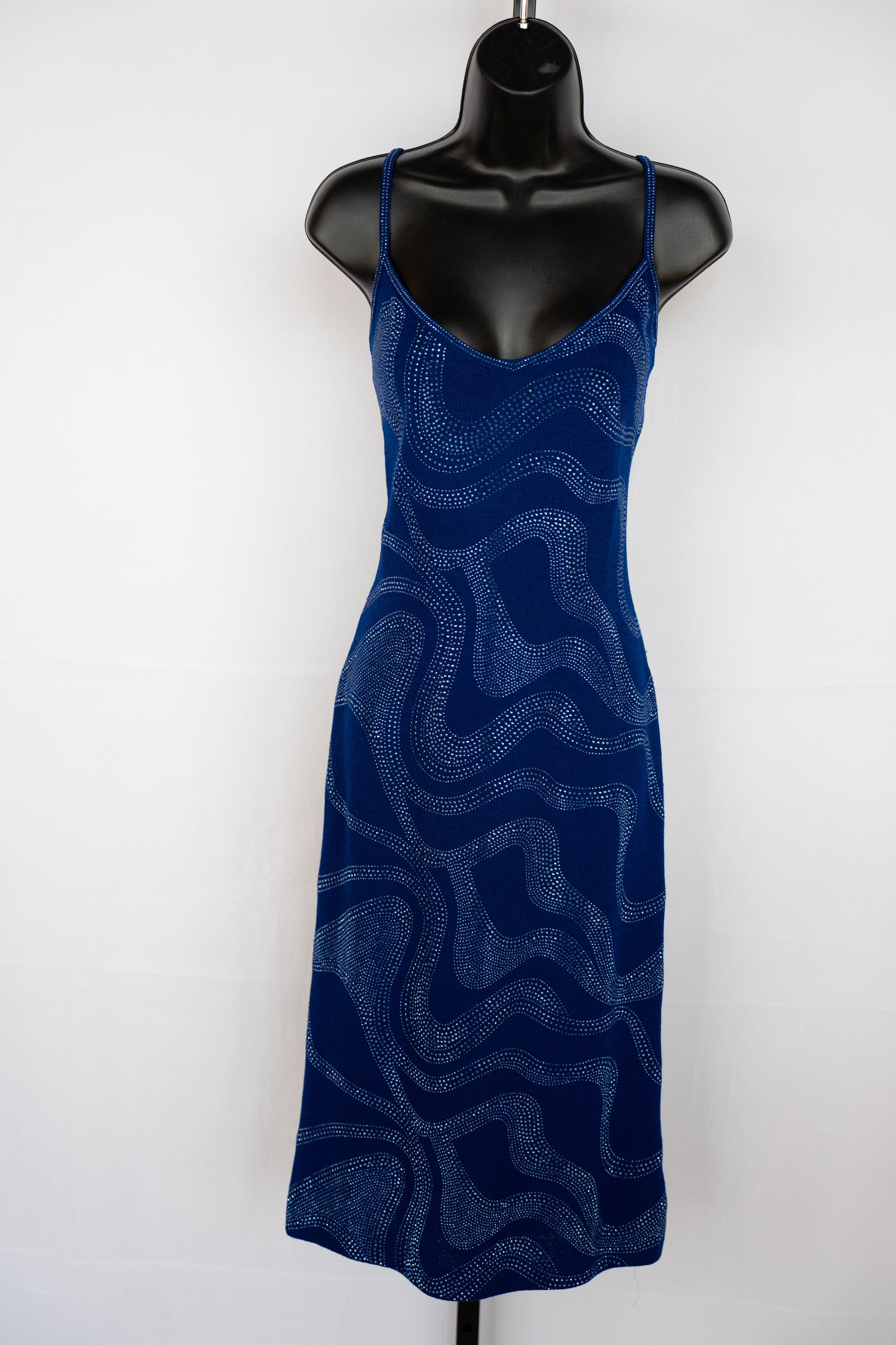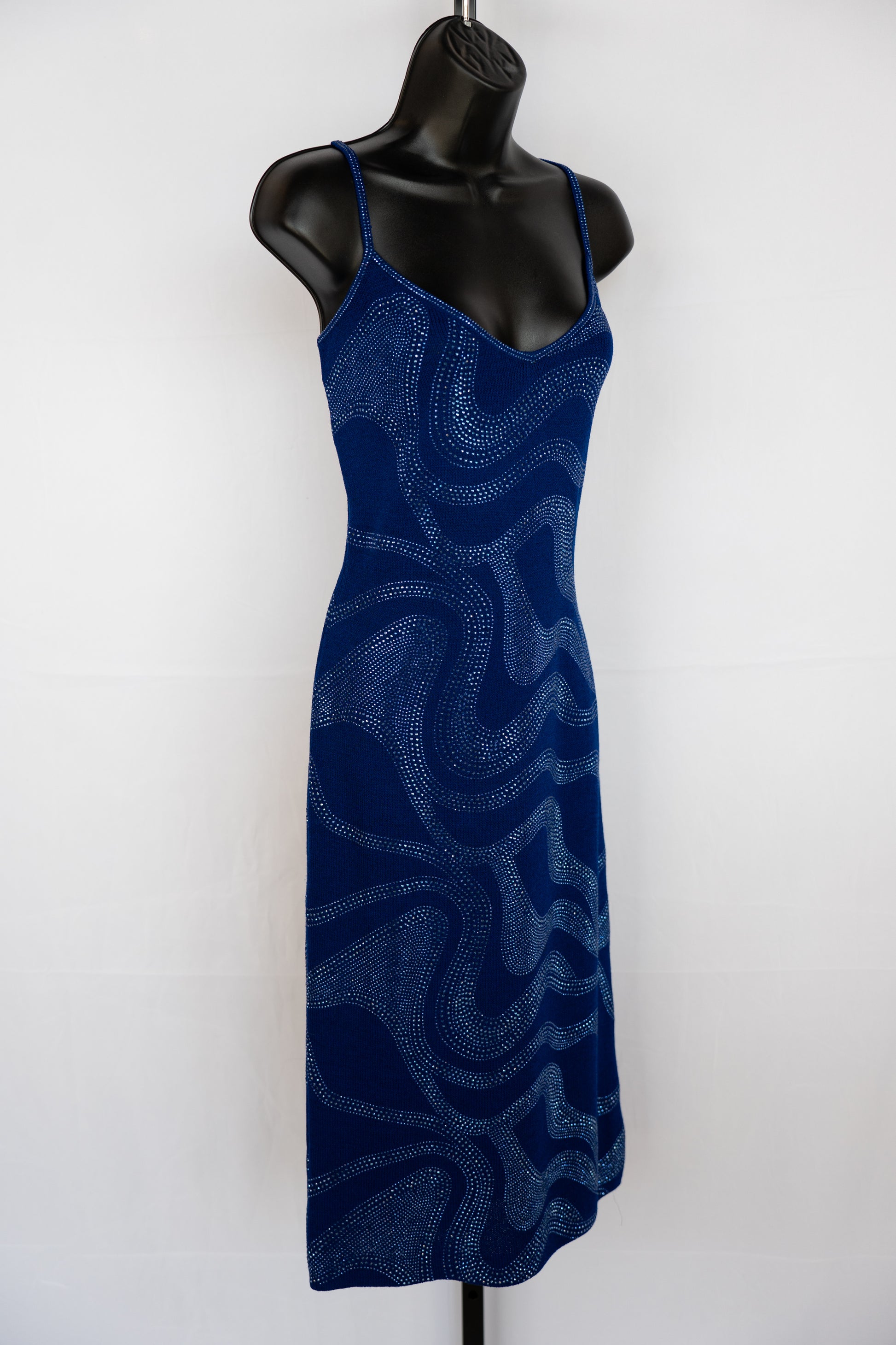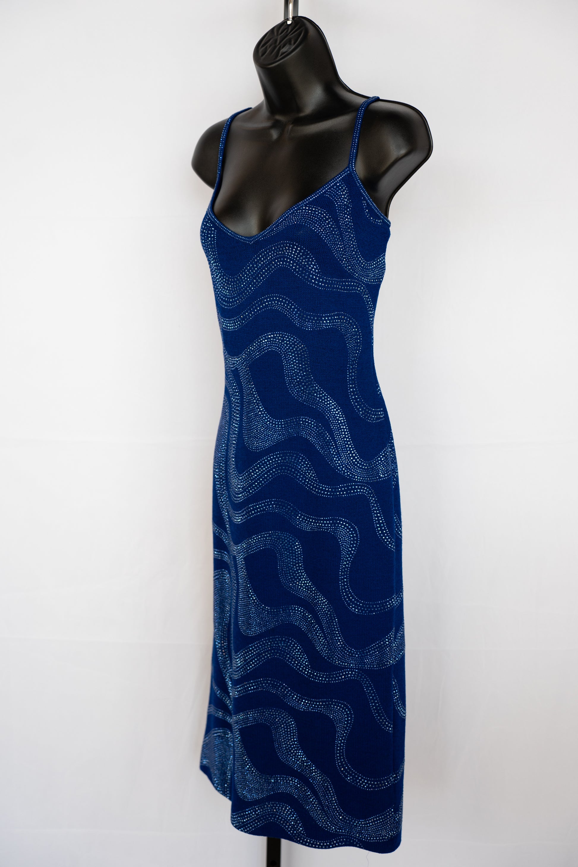 St. John Evening Knit Blue w Blue Rhinestone Detail Sleeveless Midi Dress