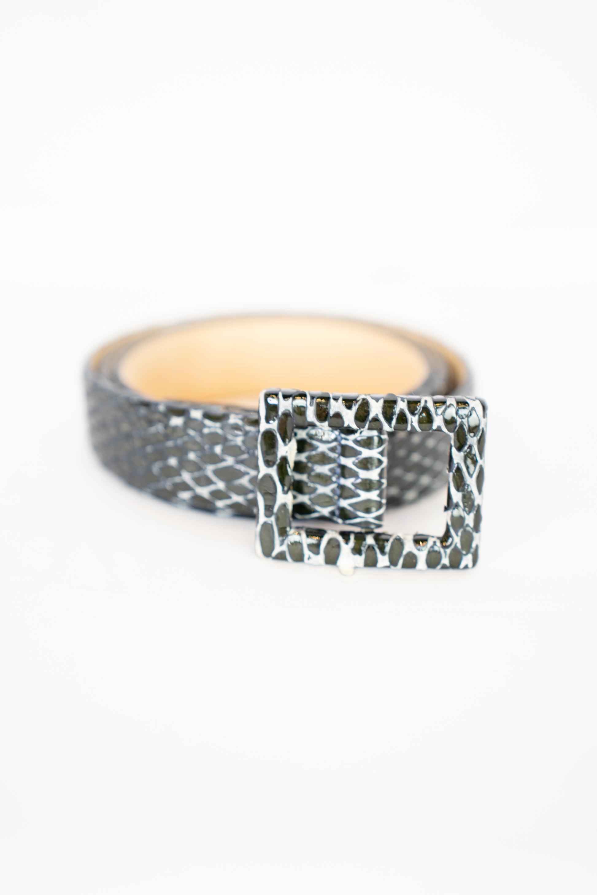 St. John Leather Black & White Genuine Snakeskin Belt w Square Buckle