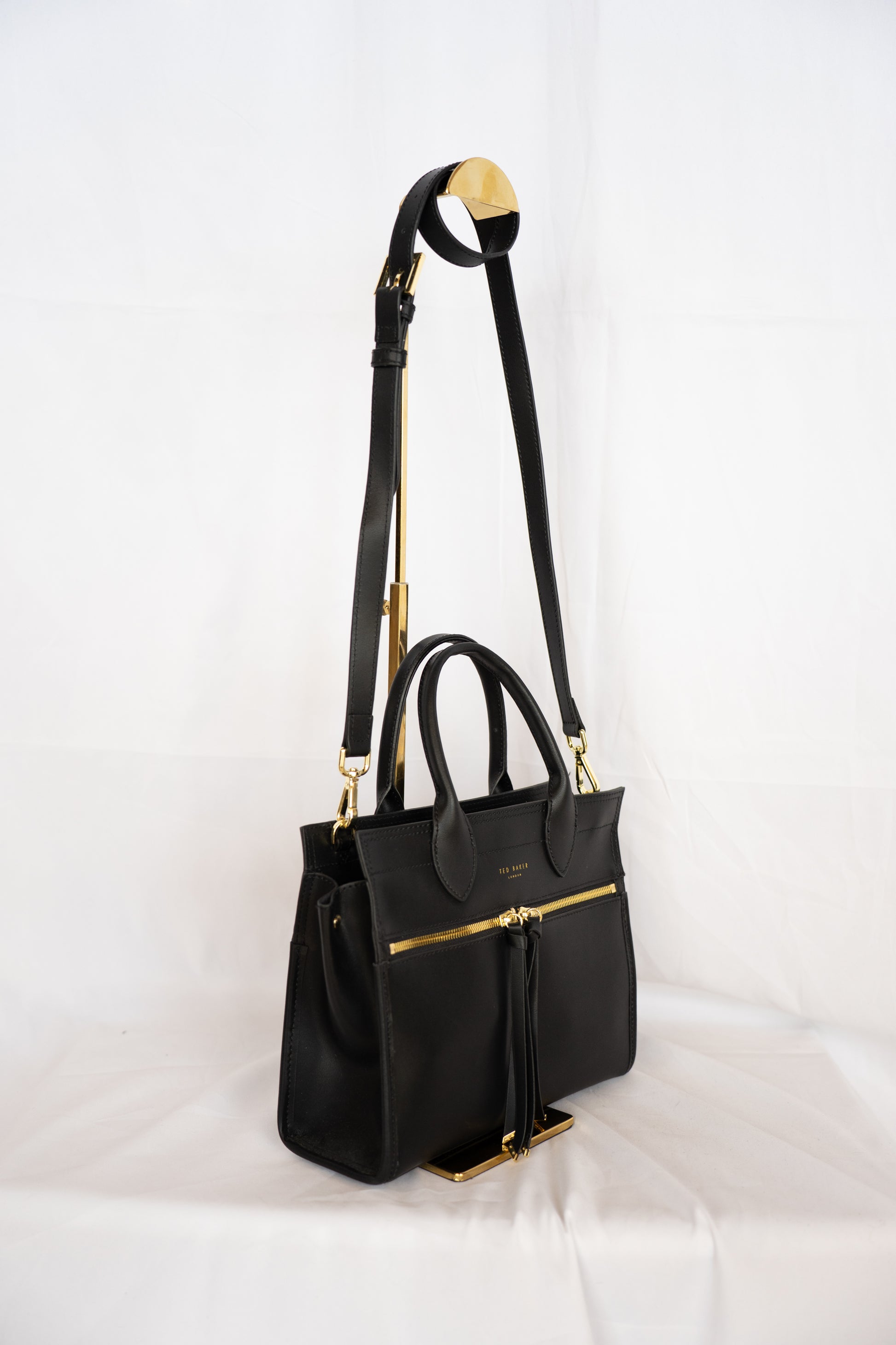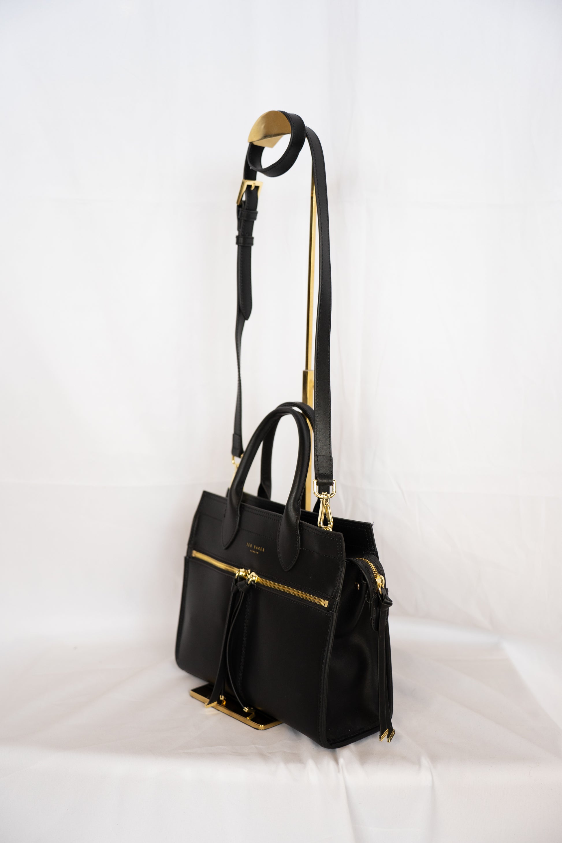 Ted Baker Black Leather Double Front Zip Top/Handle Crossbody Tote