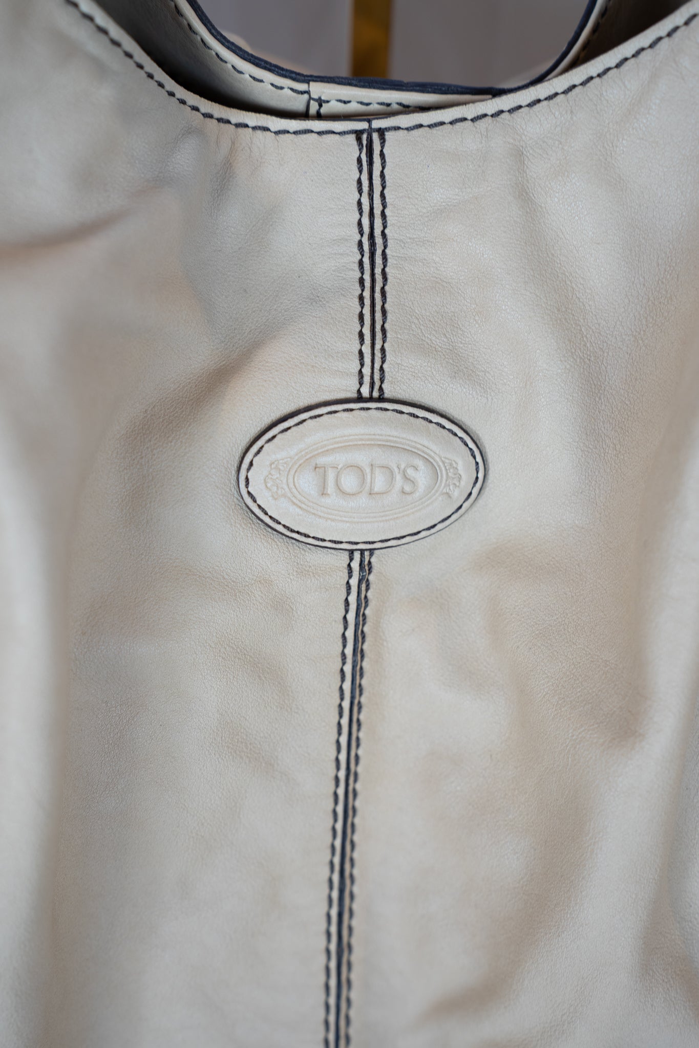 Tod's Beige Leather Hobo Tote Bag w Dark Brown Stitching