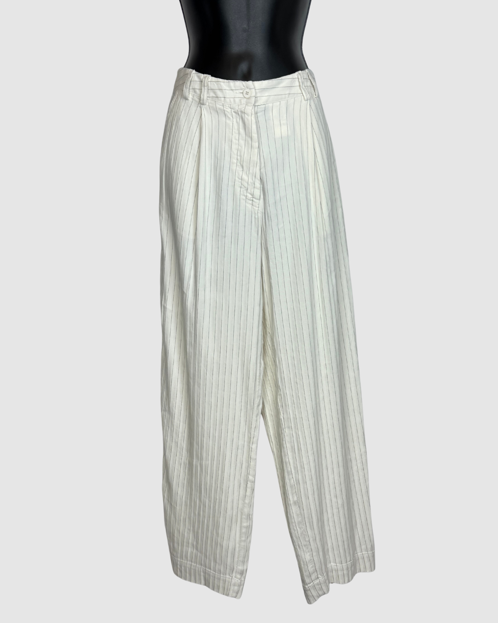 Transit Par Such White Wide Leg Pants w/ Black Pinstripes