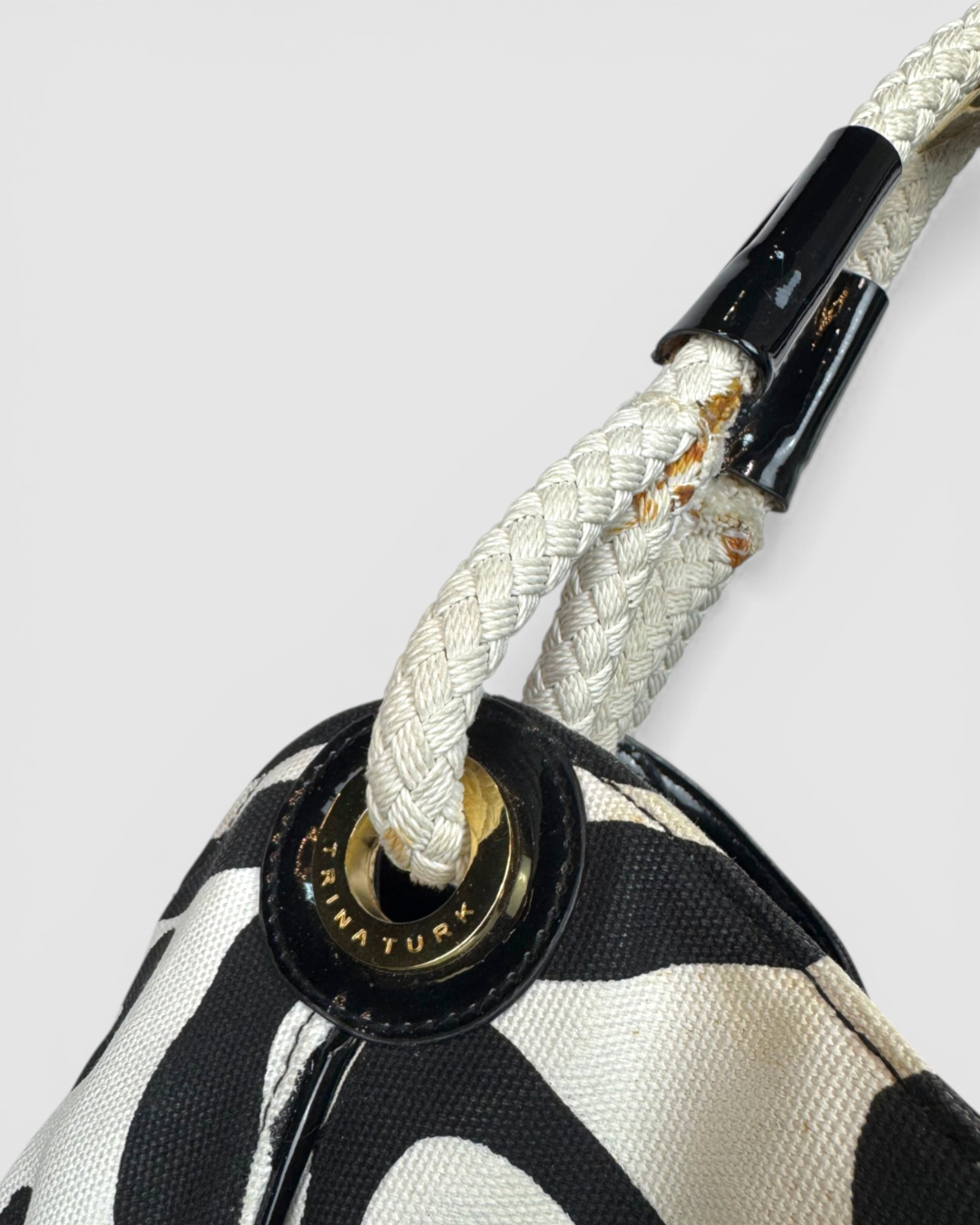 Trina Turk Patent Leather Black & White Zebra Print Rope Handle Tote