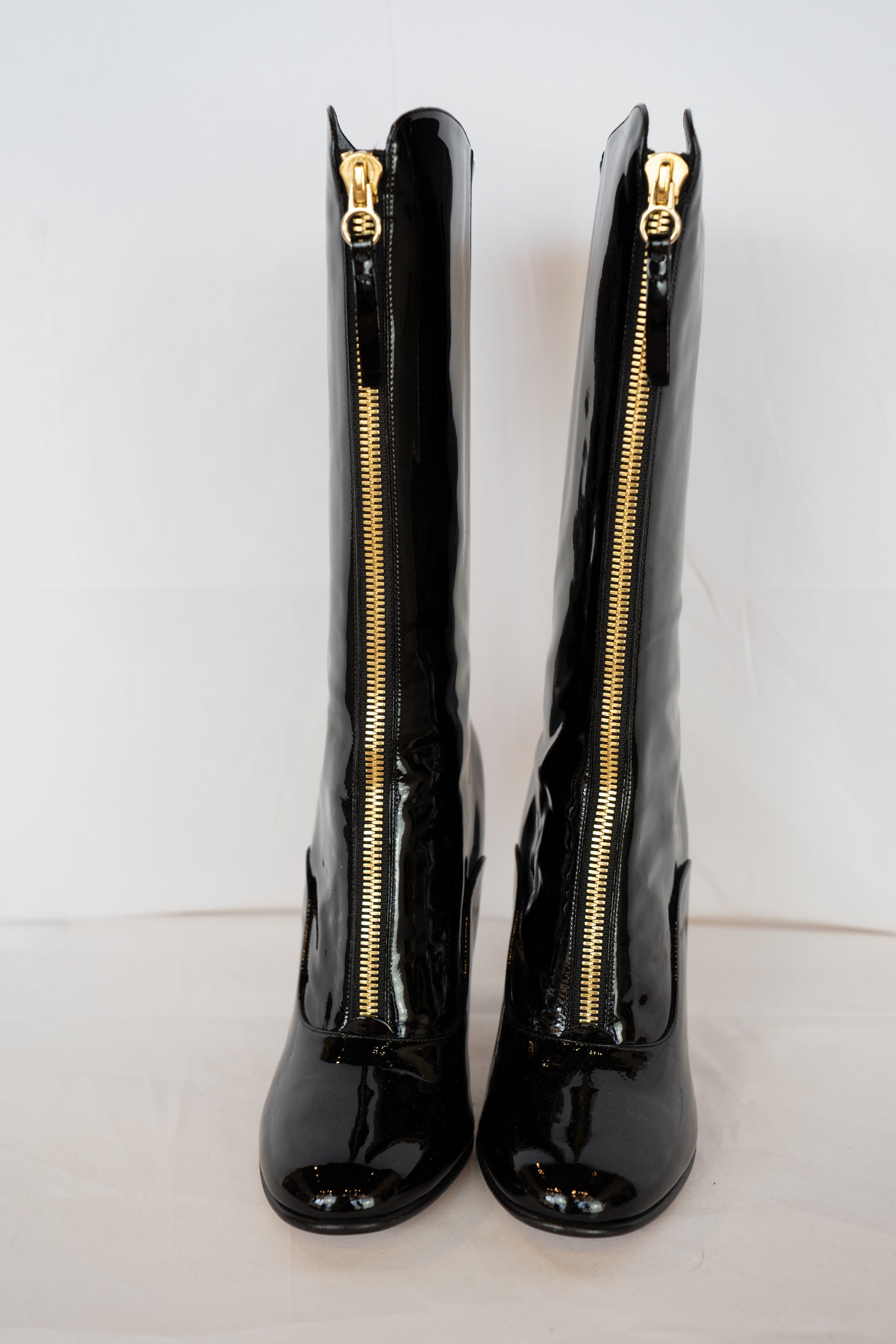 COMES WITH BOX - Valentino Garavani Black Patent Leather Mid-Calf Boots w/ Zipper Down the Front