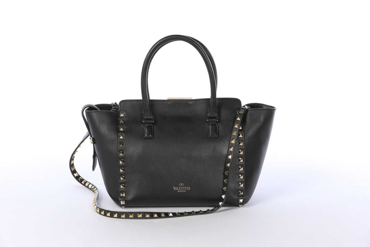 Valentino Black Small Rockstud Top Handle Tote with Crossbody Strap
