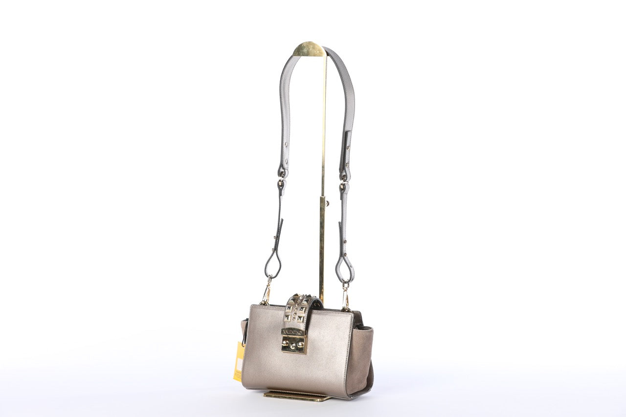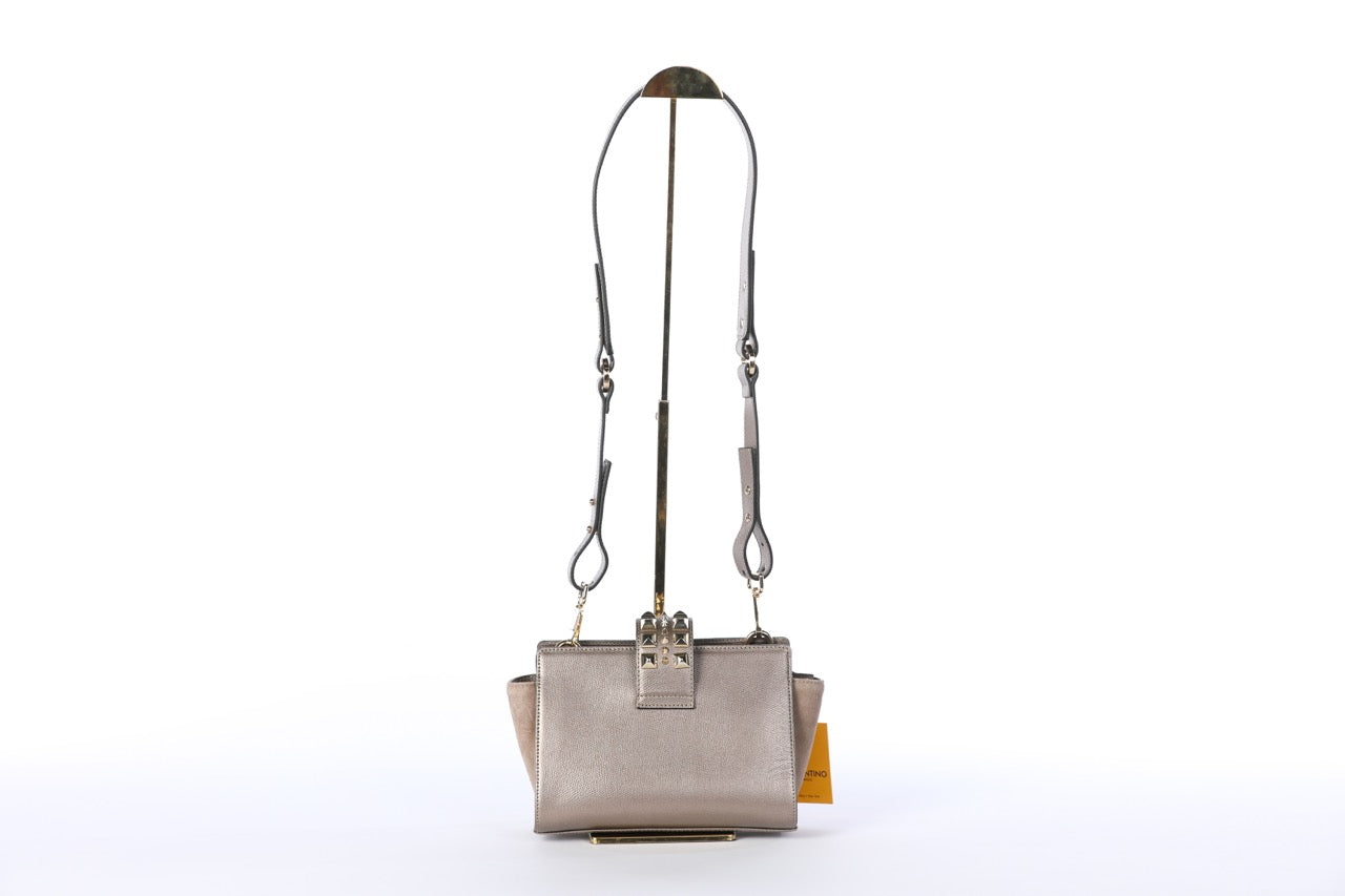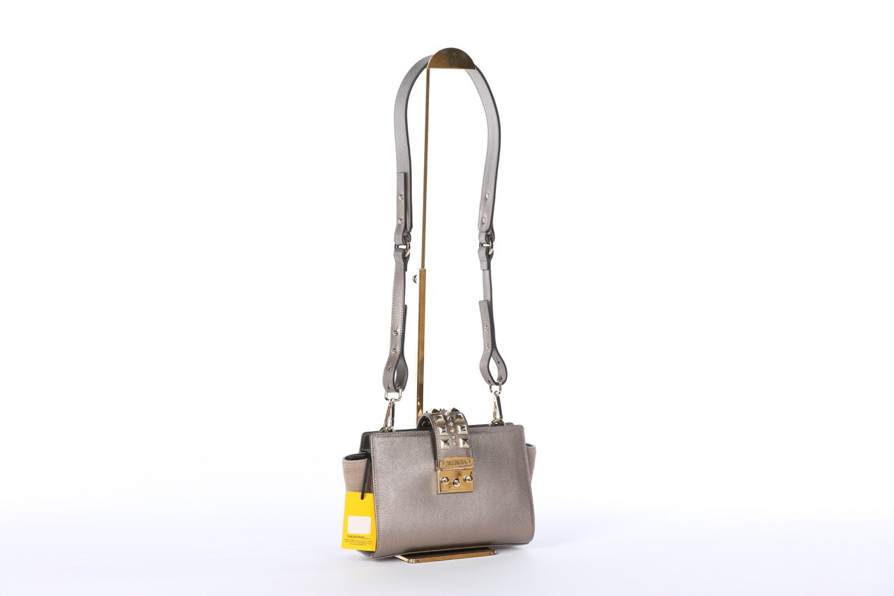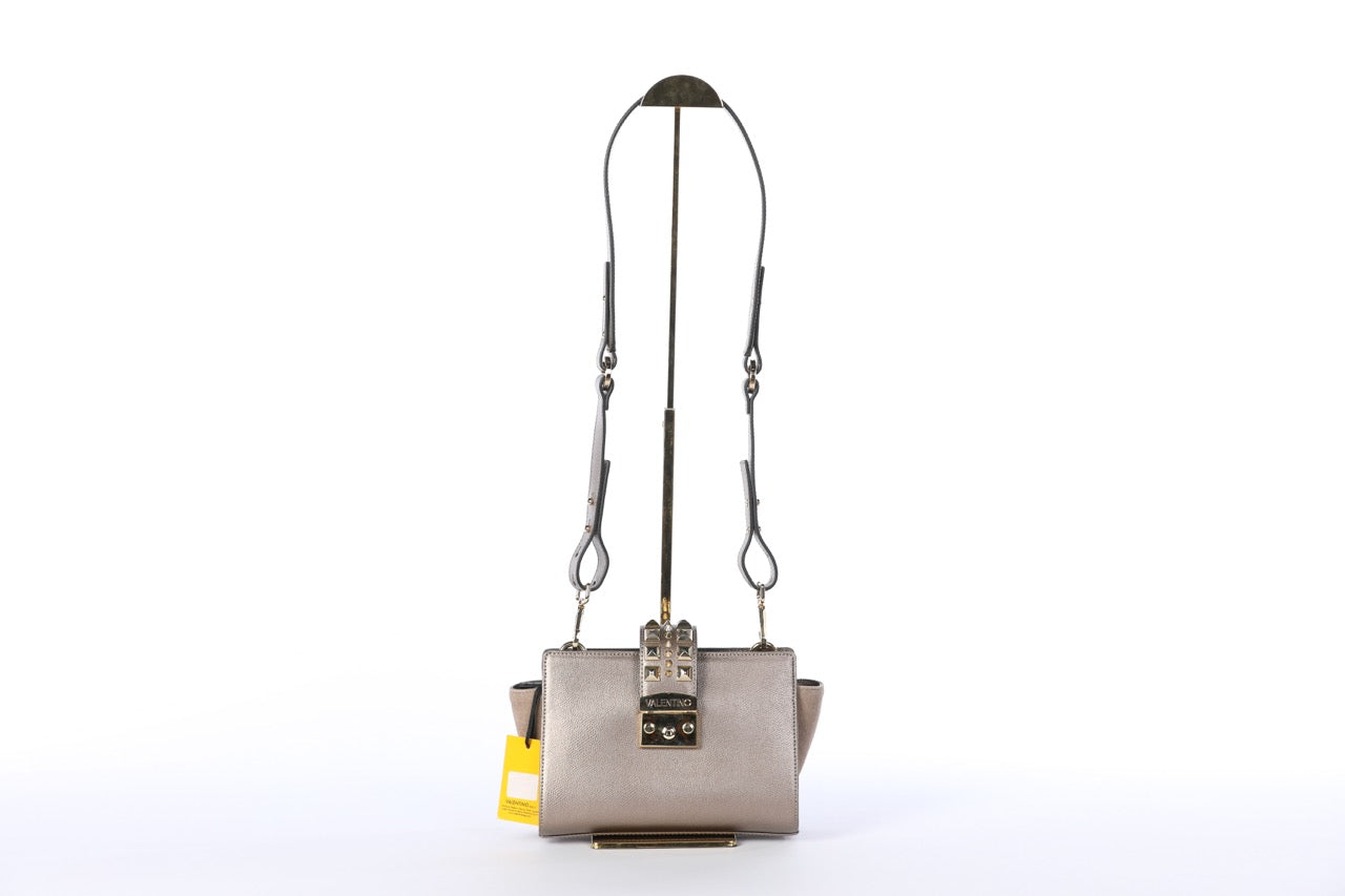 Valentino Silver Leather Rockstud Push Latch Crossbody Bag