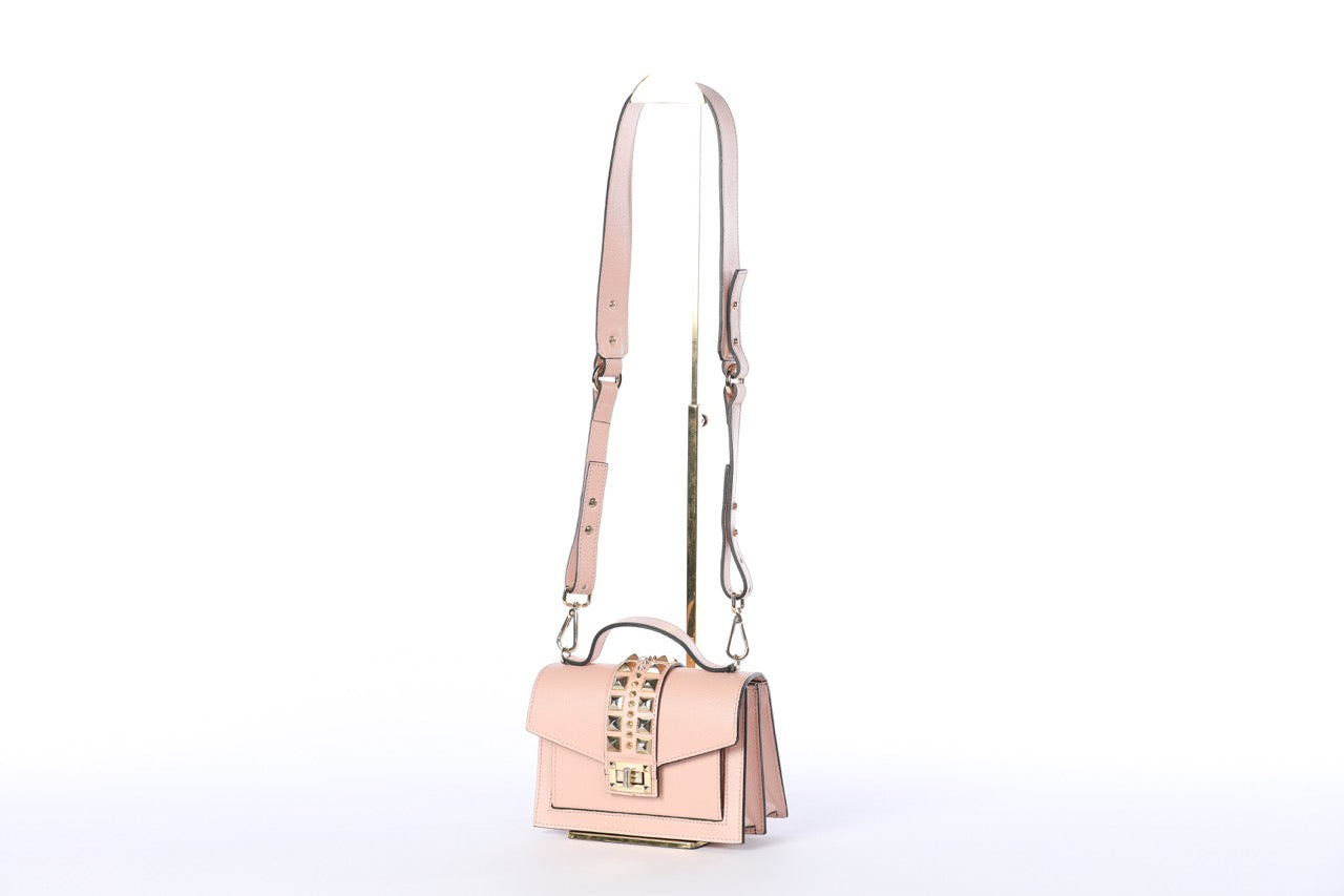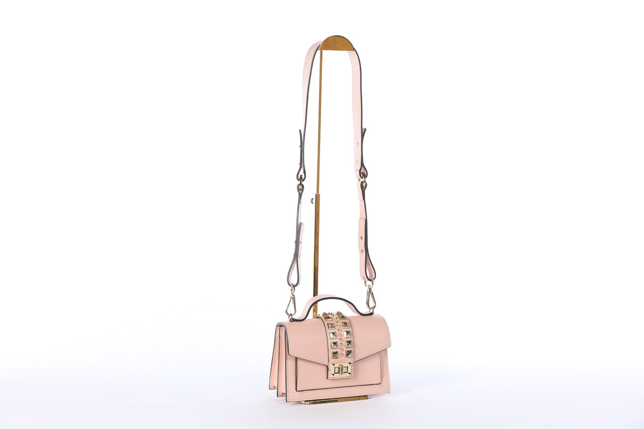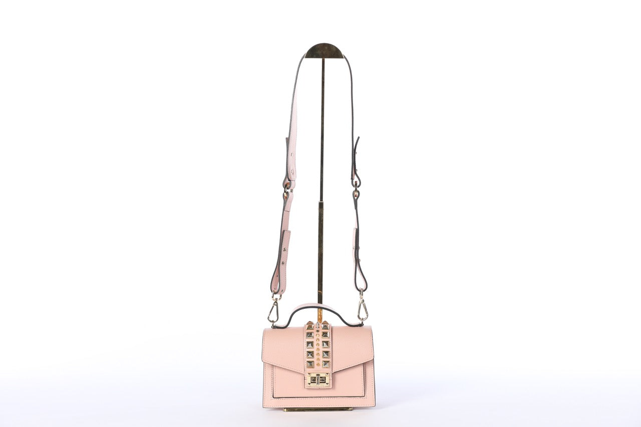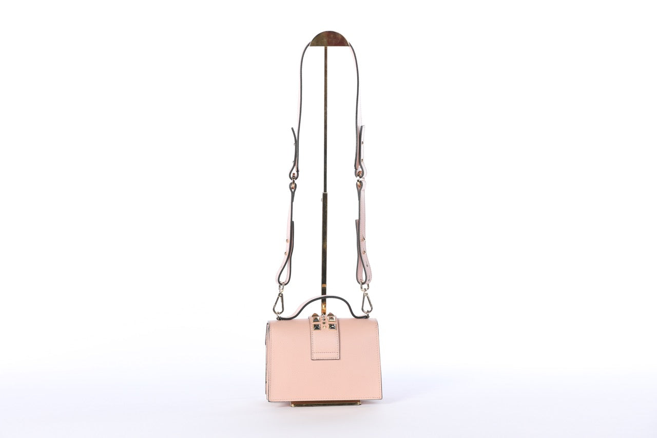 Valentino Pink Leather Flap Lock Top Handle/Crossbody Bag w Gold Studs