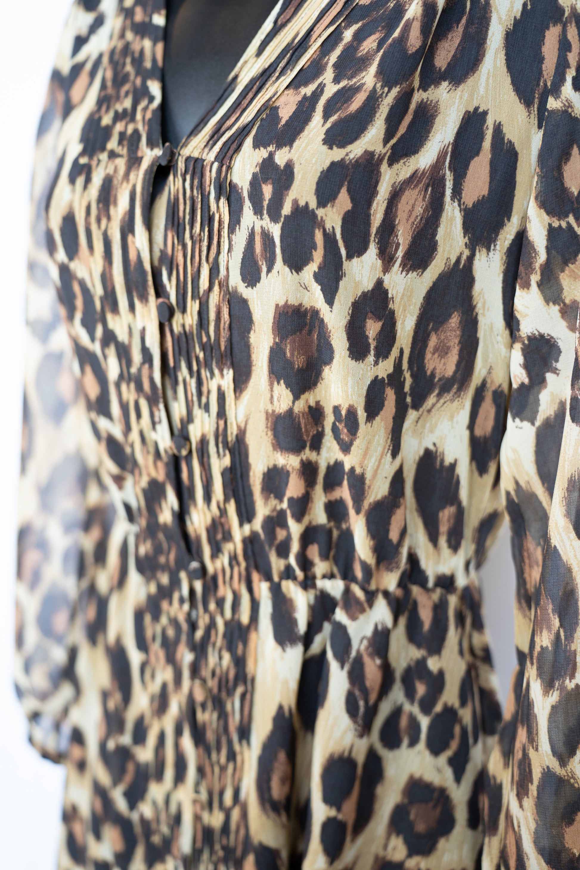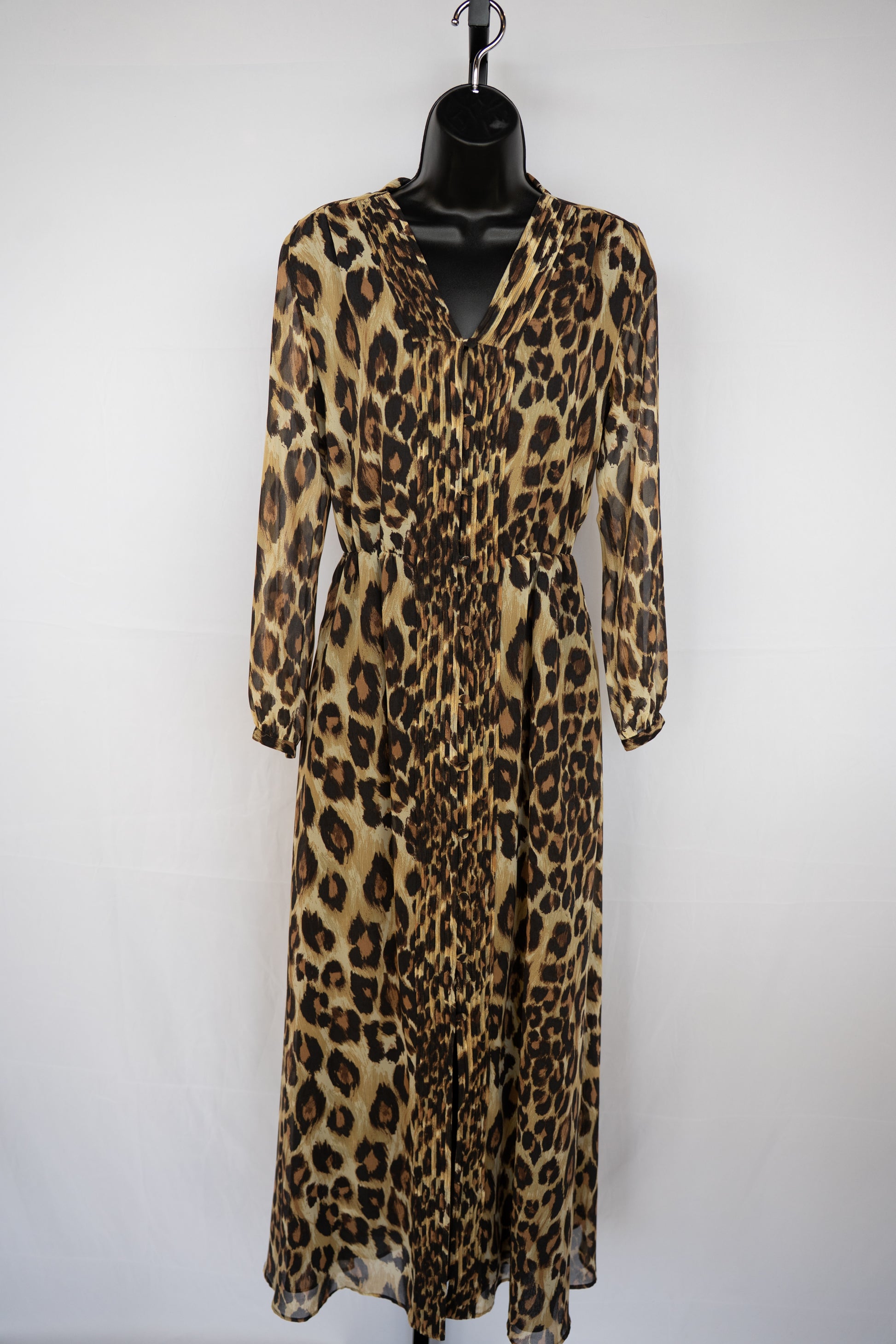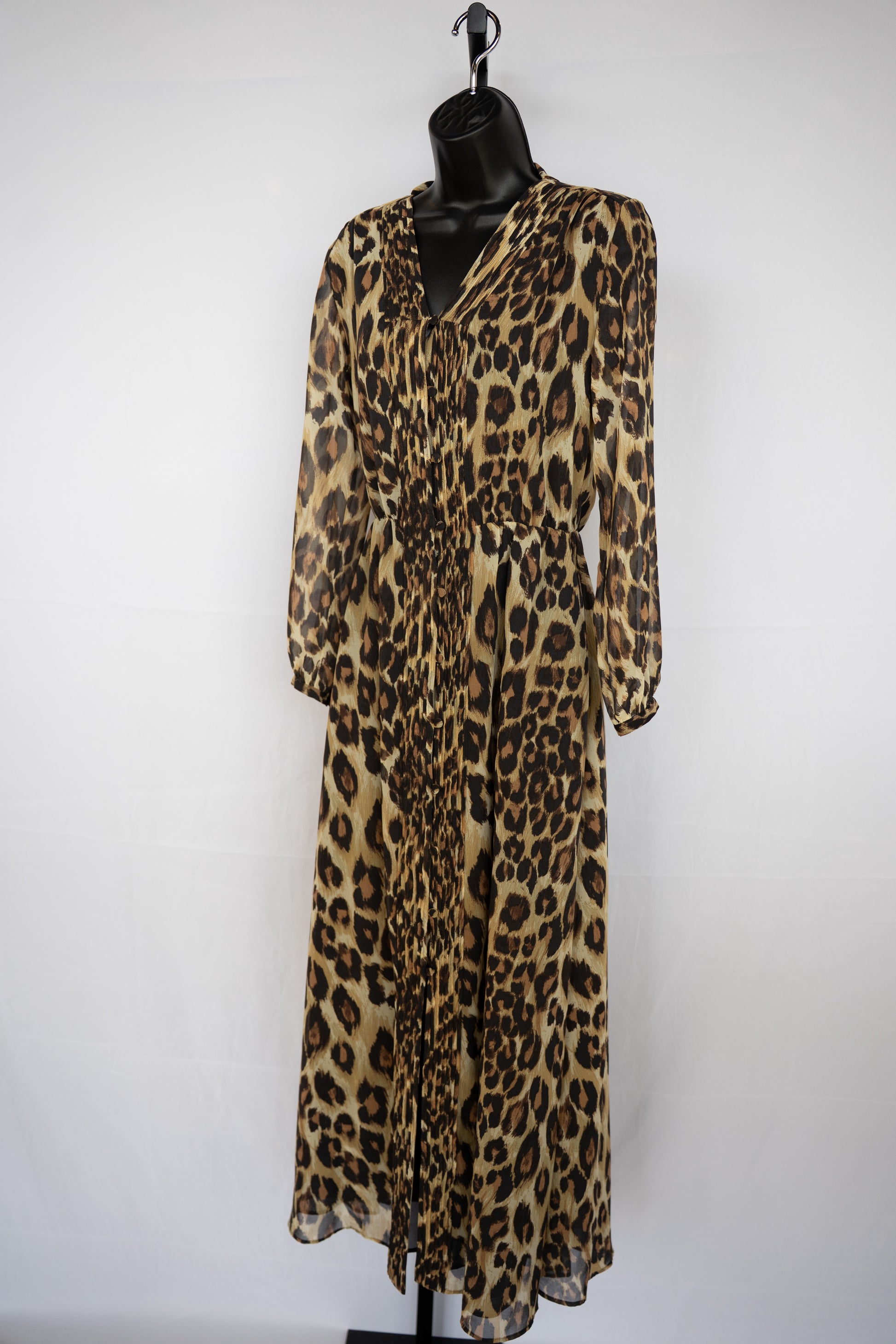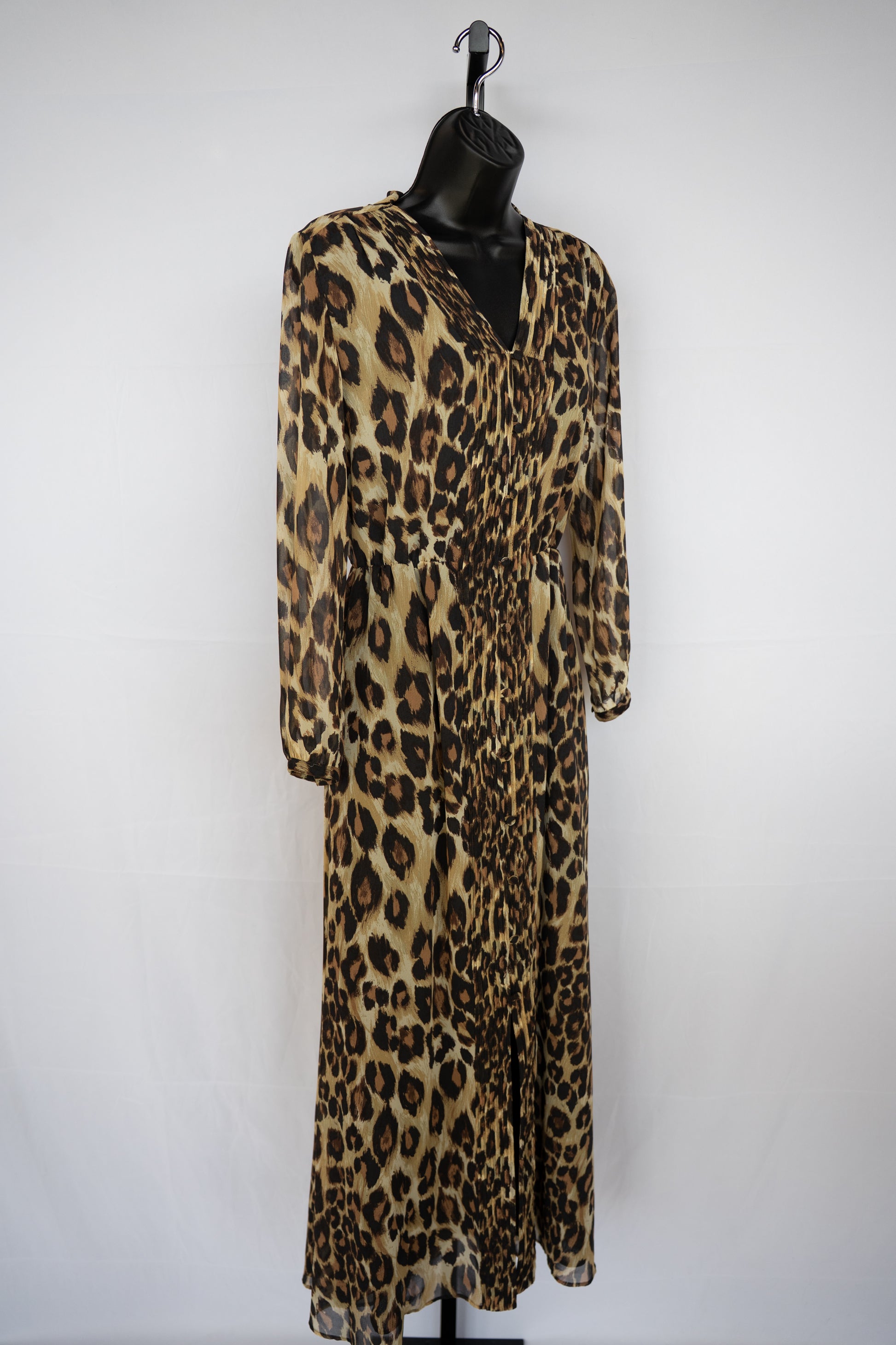 Veronica Beard Leopard Print Tie-Neck Button Up Long Sleeve Maxi Dress NWT