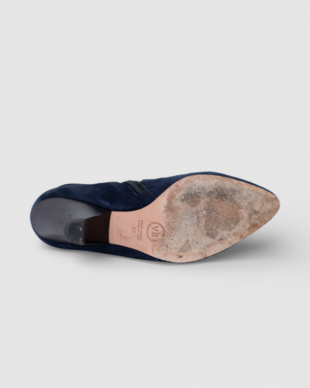 Veronica Beard Navy Suede & Black Leather Pointed Toe Fold-Over Ankle-High Heel Boots