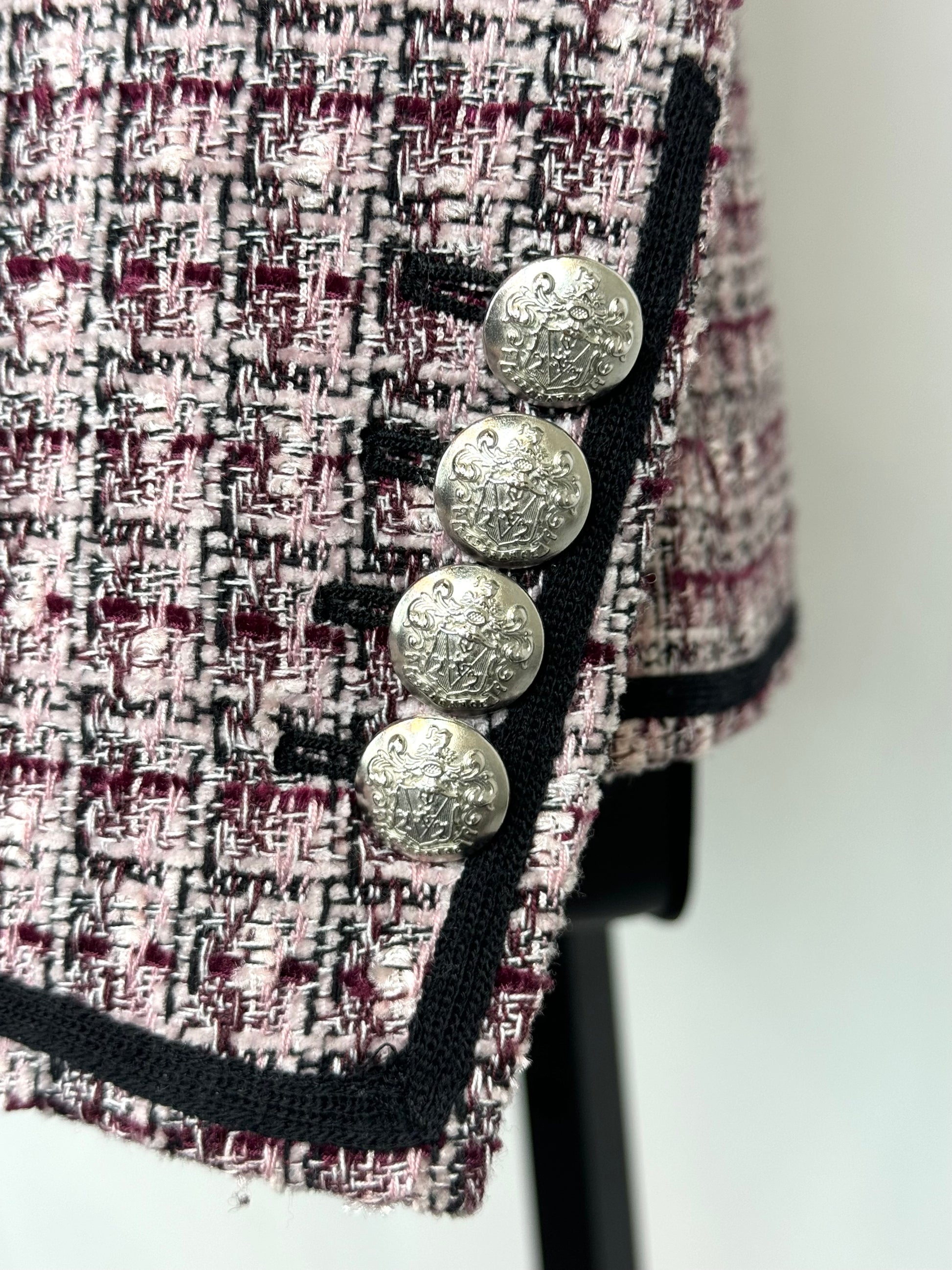 Veronica Beard Pink & Purple Tweed Button Up Jacket w 2 Front Pockets