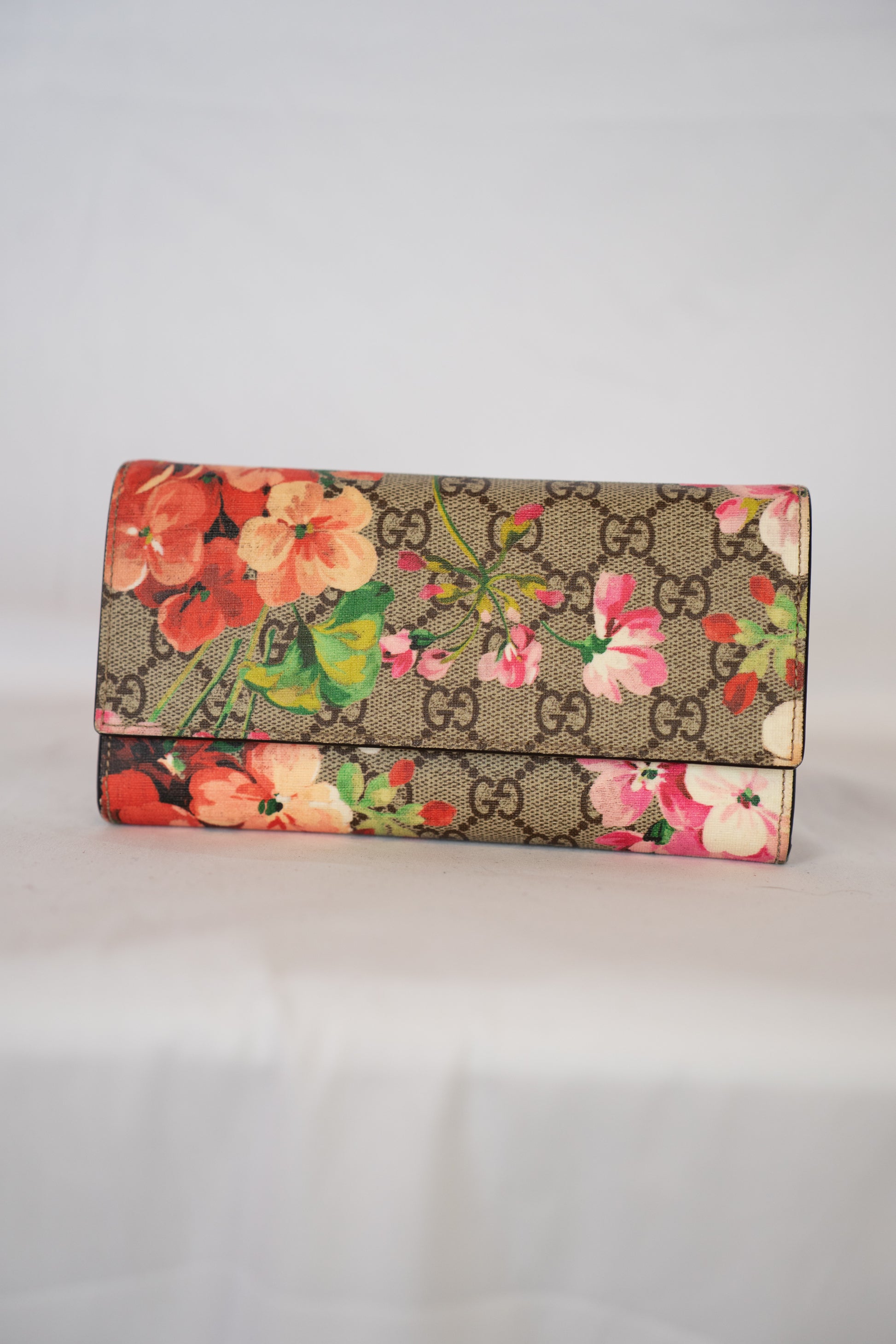 COMES WITH BOX -Gucci GG Blooms Monogram Long Bifold Button Wallet