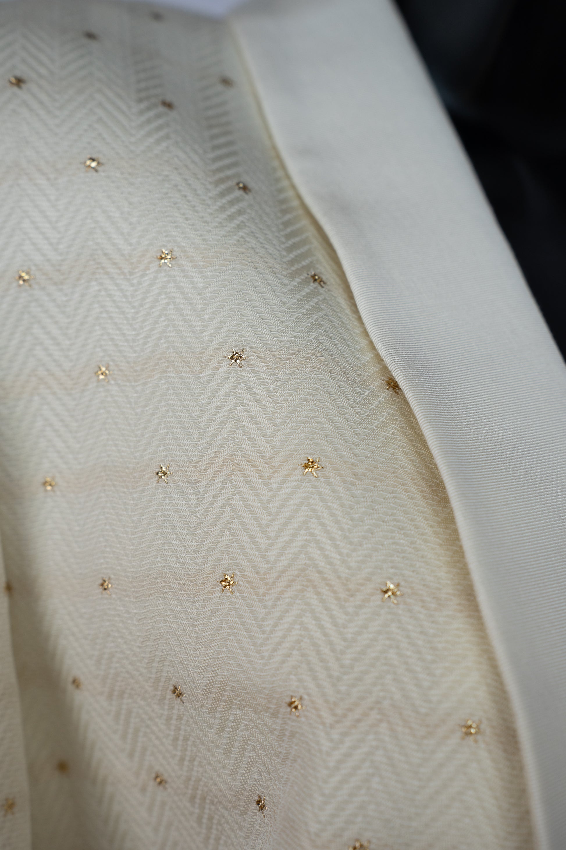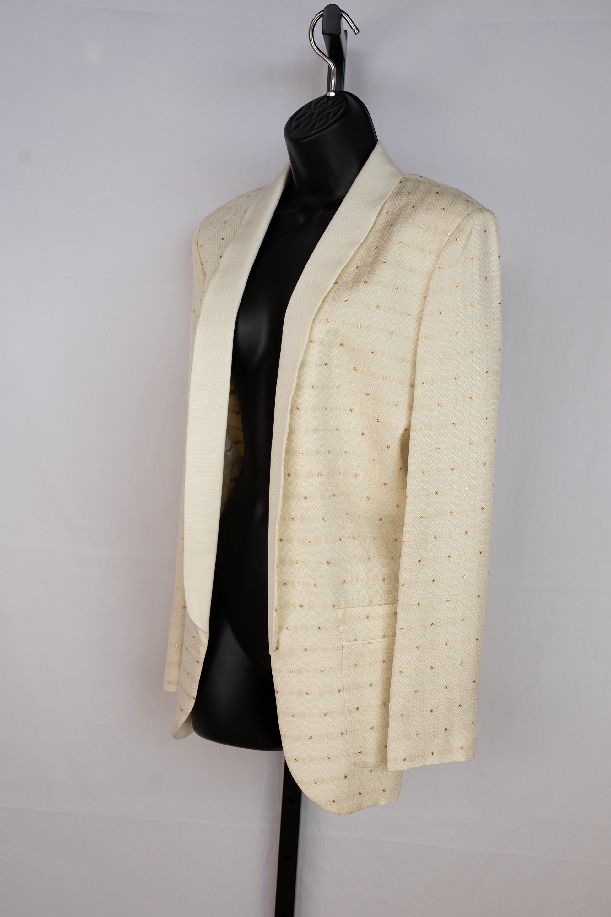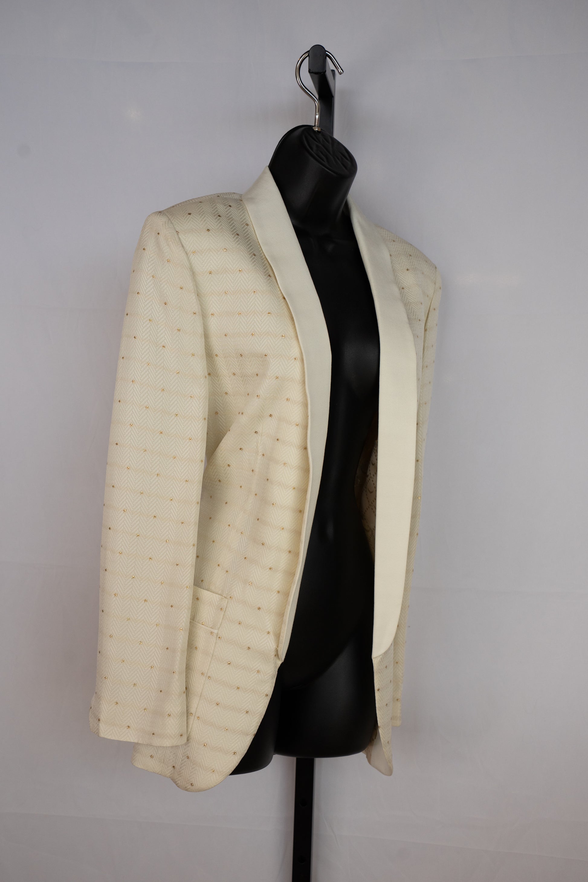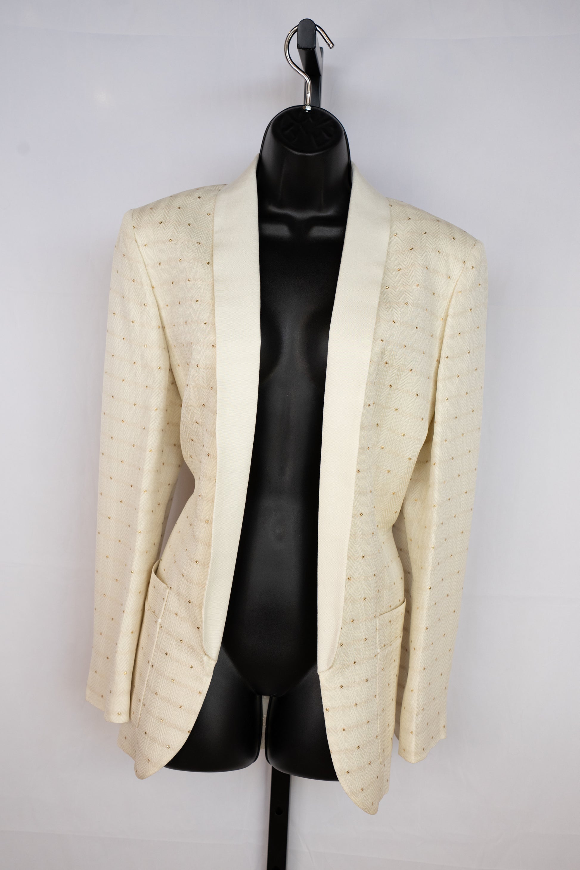 Zadig & Voltaire Pearl White Open Face Blazer w Gold Sparkle Dot Detail