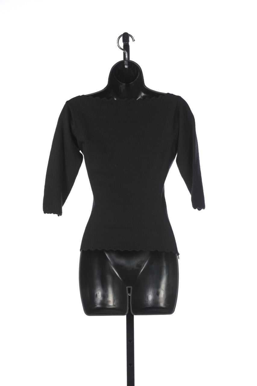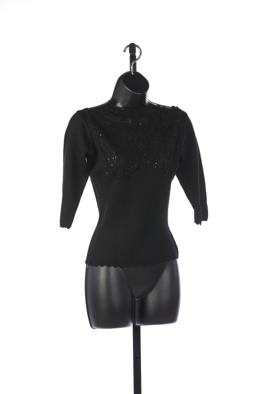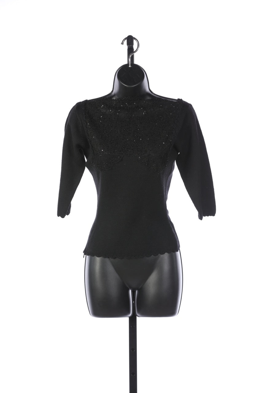Zang Toi Silk/Wool/Cashmere Black w Sequin Lace Detail Half Sleeve Top