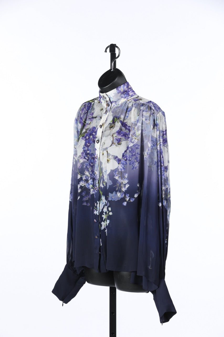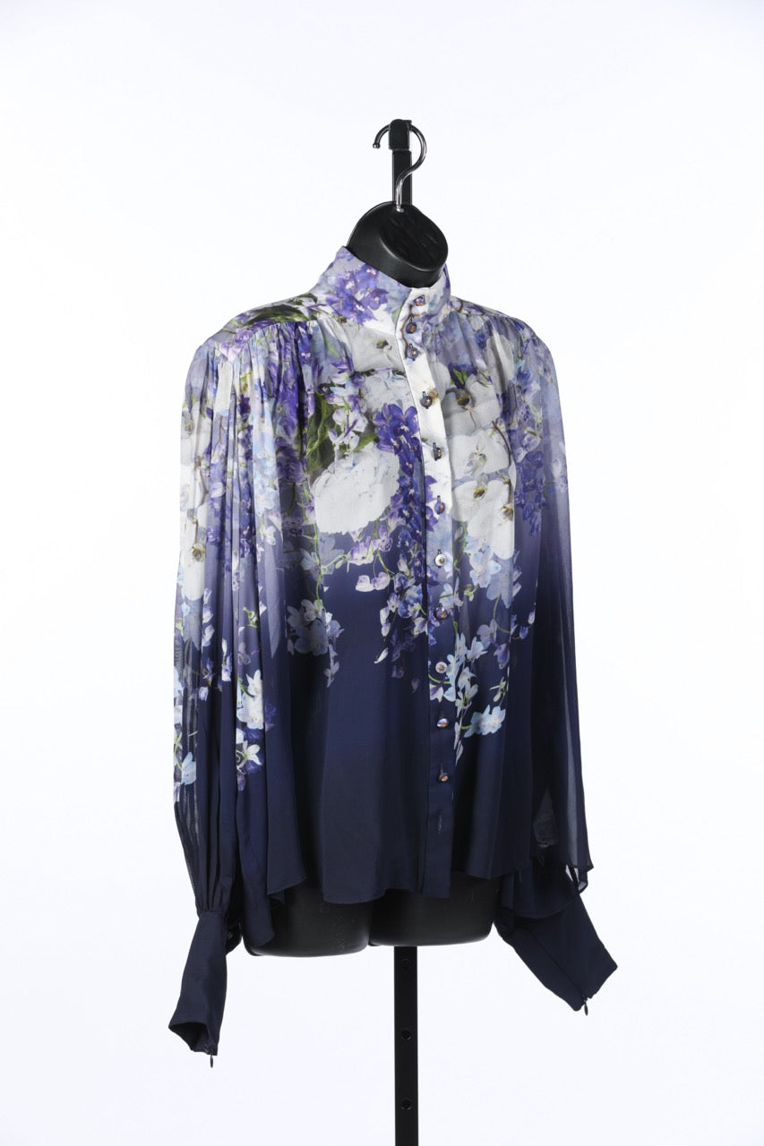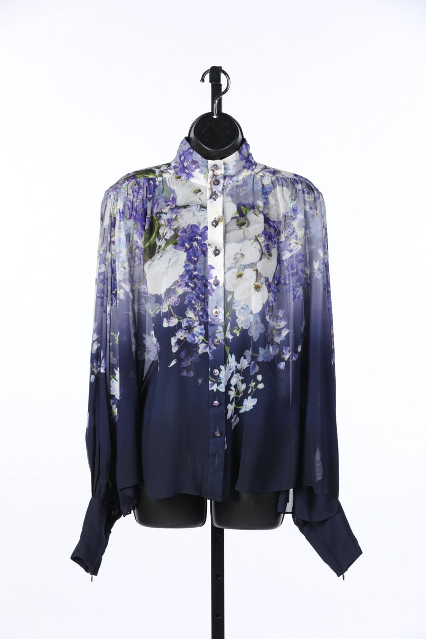 Zimmermann Purple Floral Long Sleeve Button Up Blouse NWT