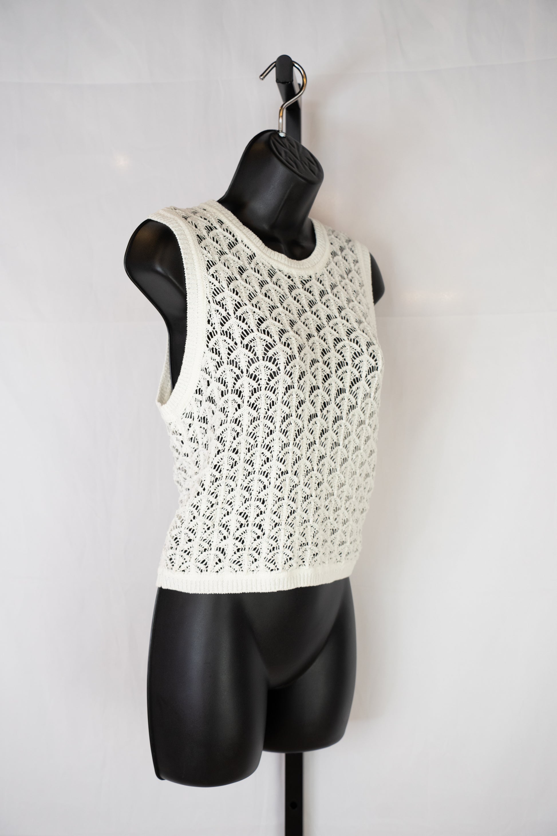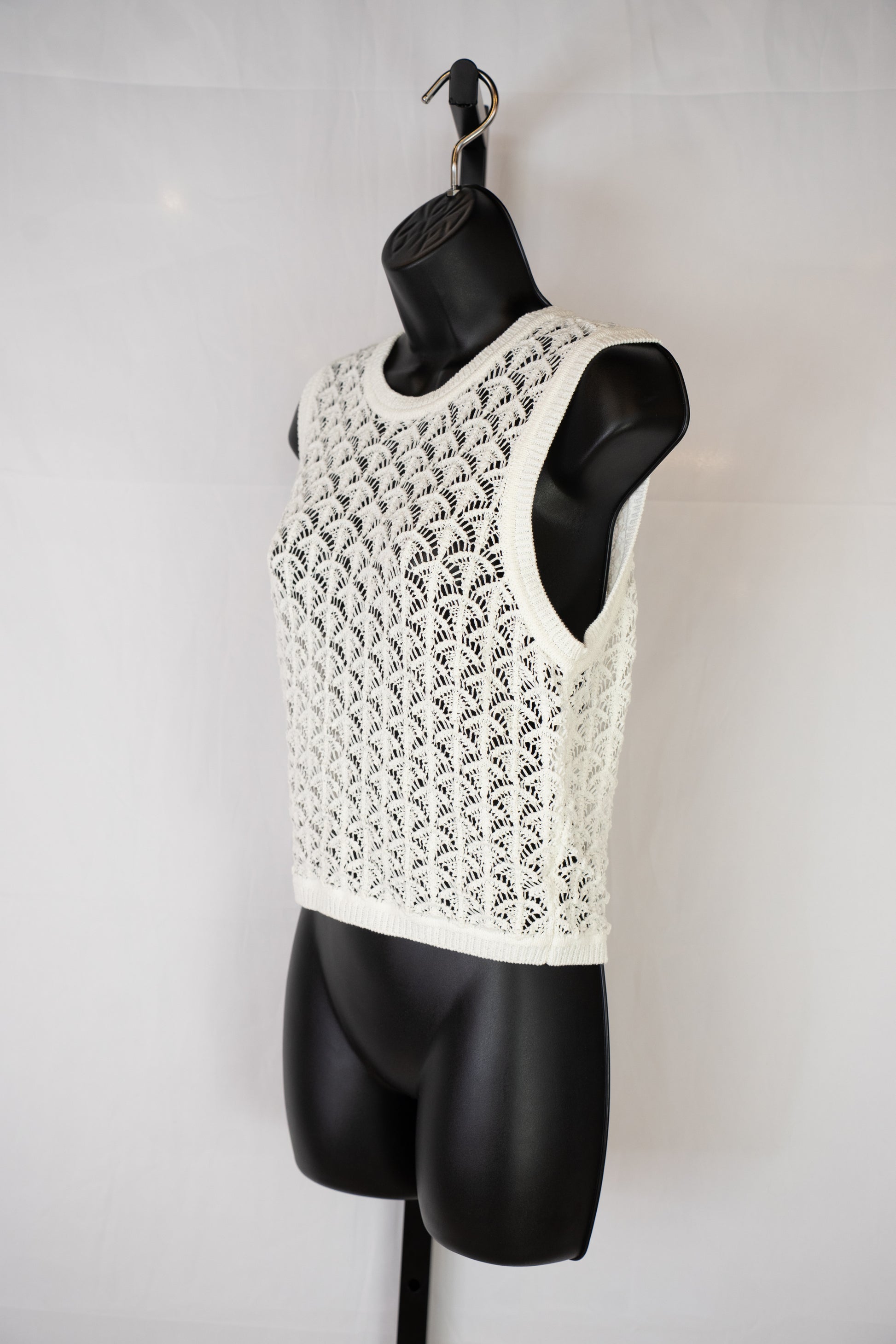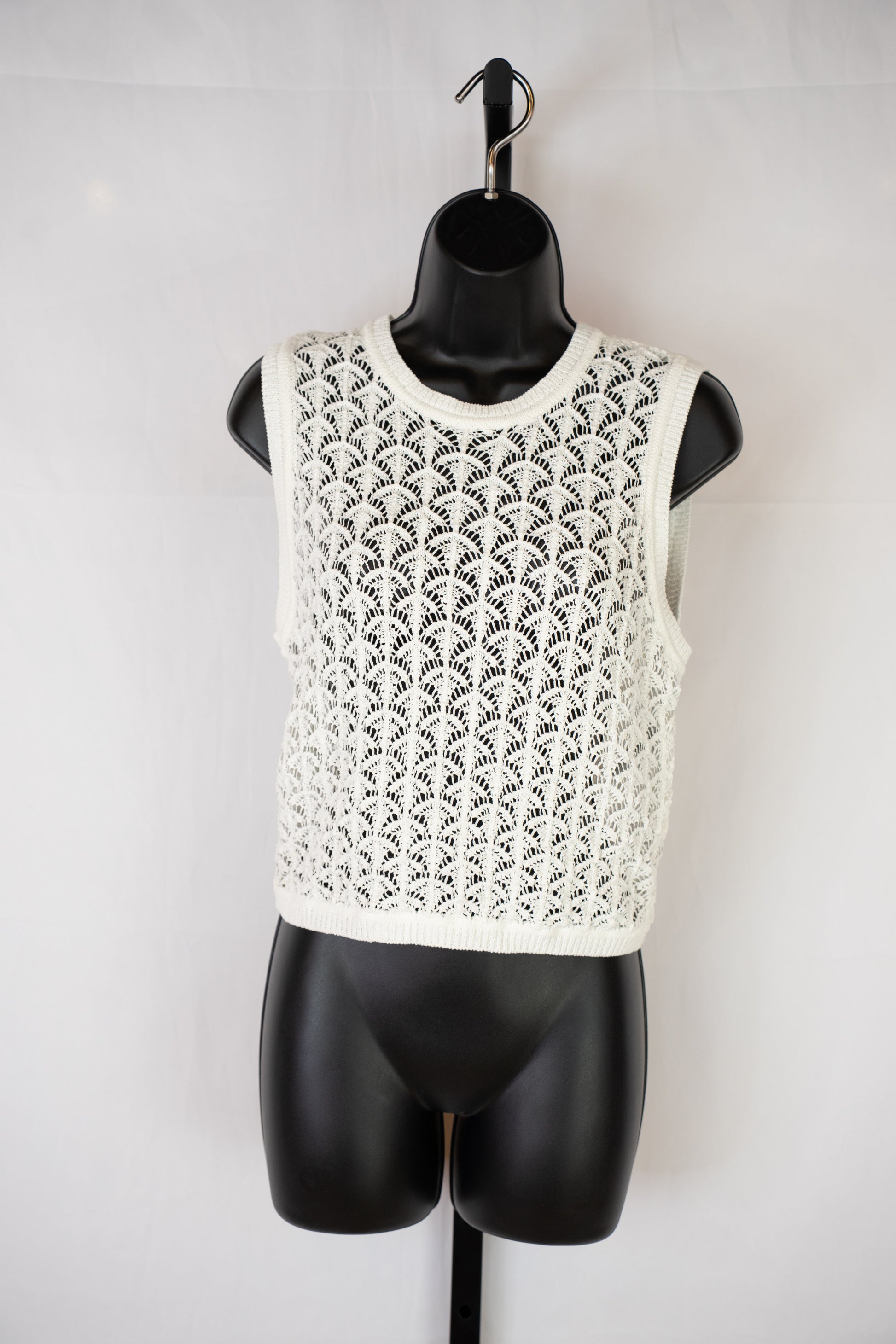 Zimmermann White Crochet Sleeveless Crop Tank Top (Part of Set)